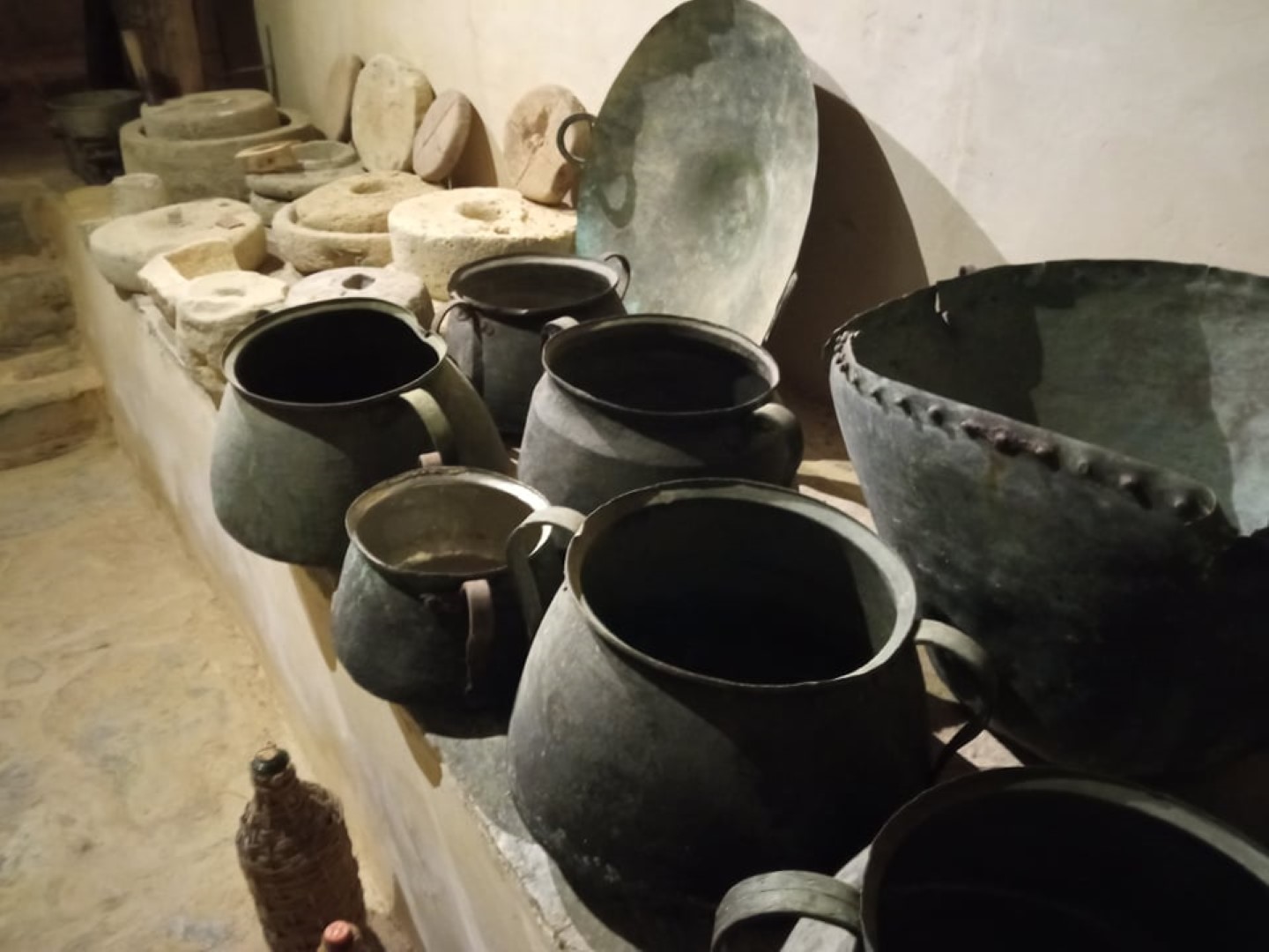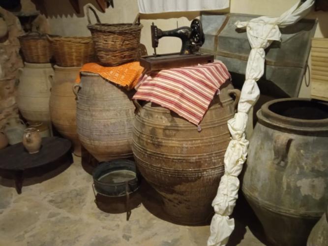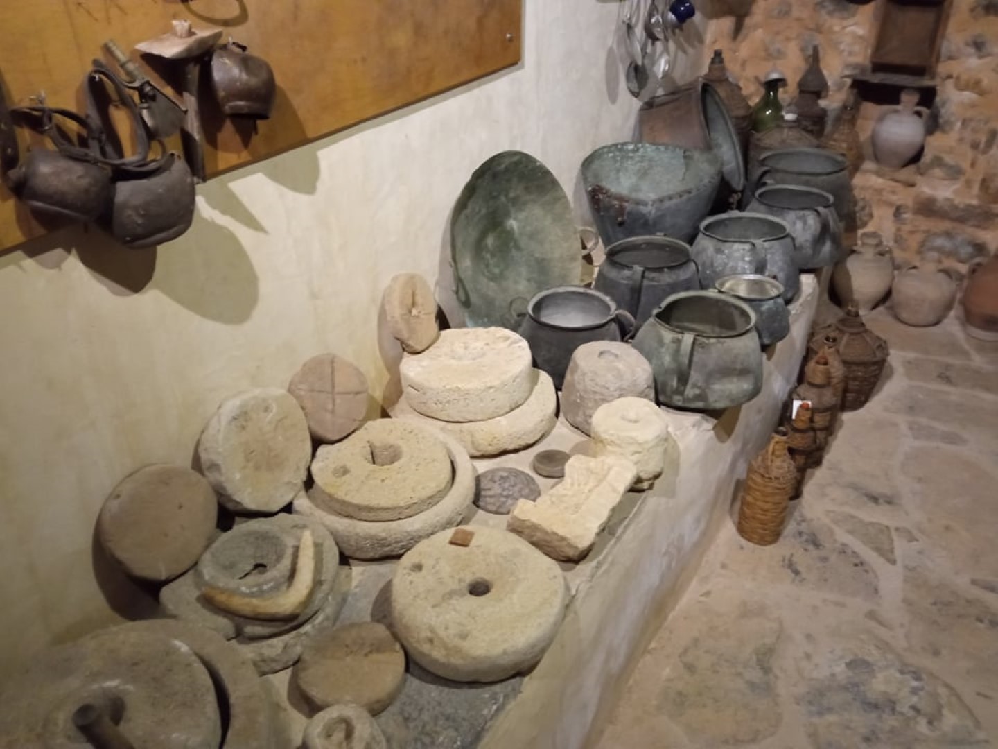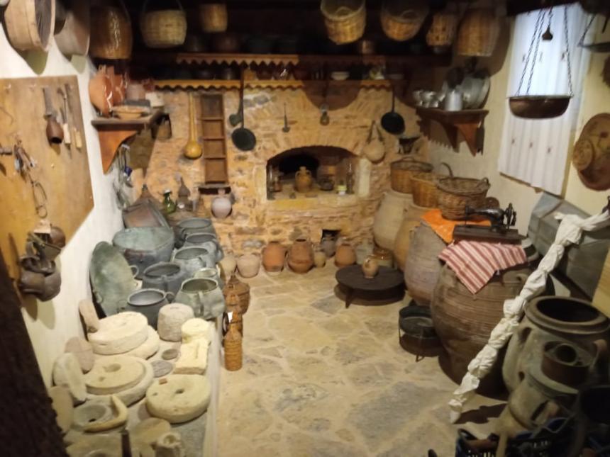 Για παράδειγμα, στην αίθουσα του παλιού φούρνου της μονής θα δει πήλινα σκεύη, είδη αποθήκευσης ή παρασκευής της τροφής, εργαλεία και αντικείμενα, μοναδικού λαογραφικού ενδιαφέροντος.