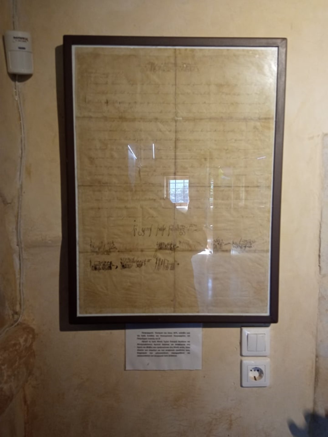 Ανάμεσα στα πιο ενδιαφέροντα κειμήλια είναι το Πατριαρχικό και Συνοδικό Σιγίλιο του 1875 και ένα Φερμάνι του Σουλτάνου Αμπντούλαζίζ του 1864. Βρισκόταν φυλαγμένα σε σπίτι της Κρήτης. Και εκείνοι, στην κατοχή των οποίων βρέθηκαν, τα επέστρεψαν!