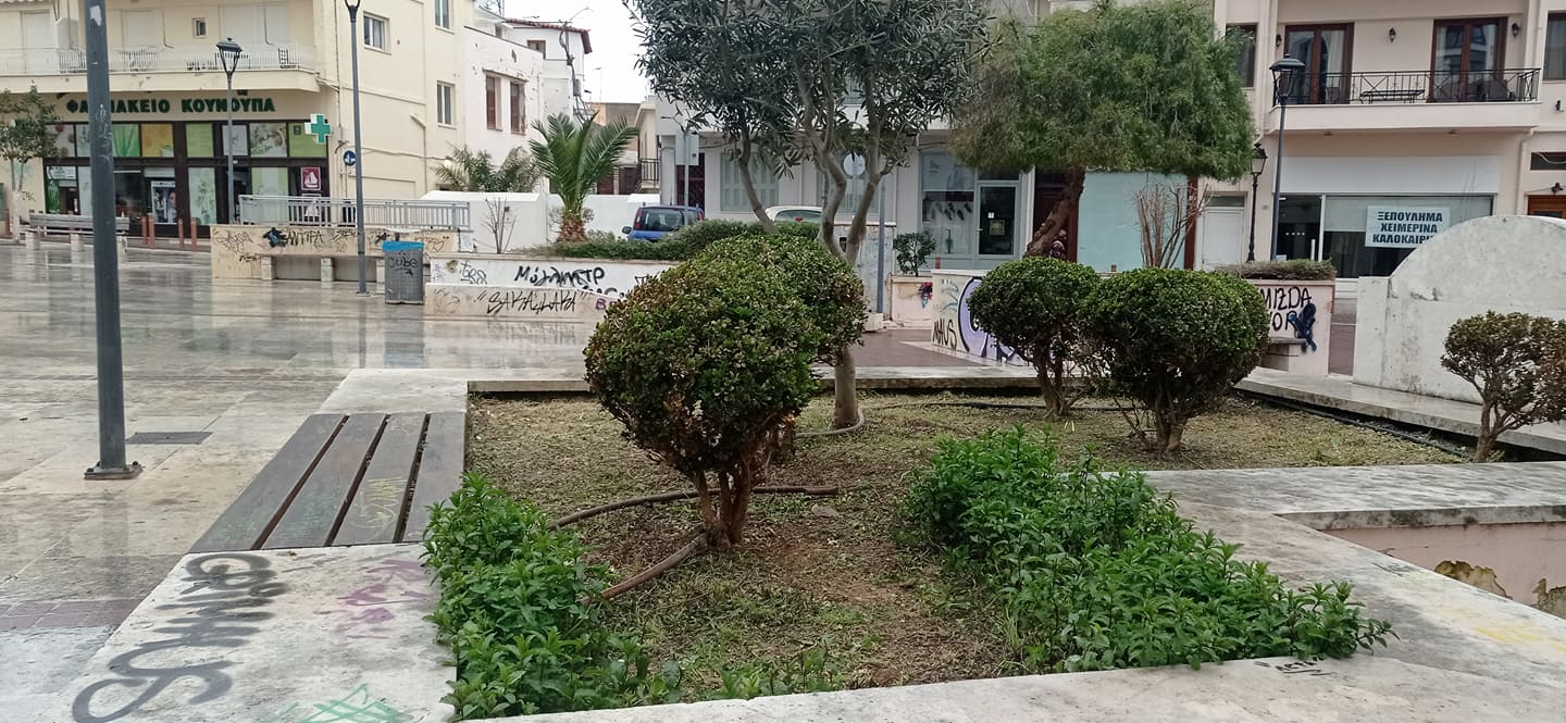 Σήμερα, σειρά είχε ο καλλωπισμός της πλατείας και των γραφείων της Μητροπόλεως Ρεθύμνης και Αυλοποτάμου.