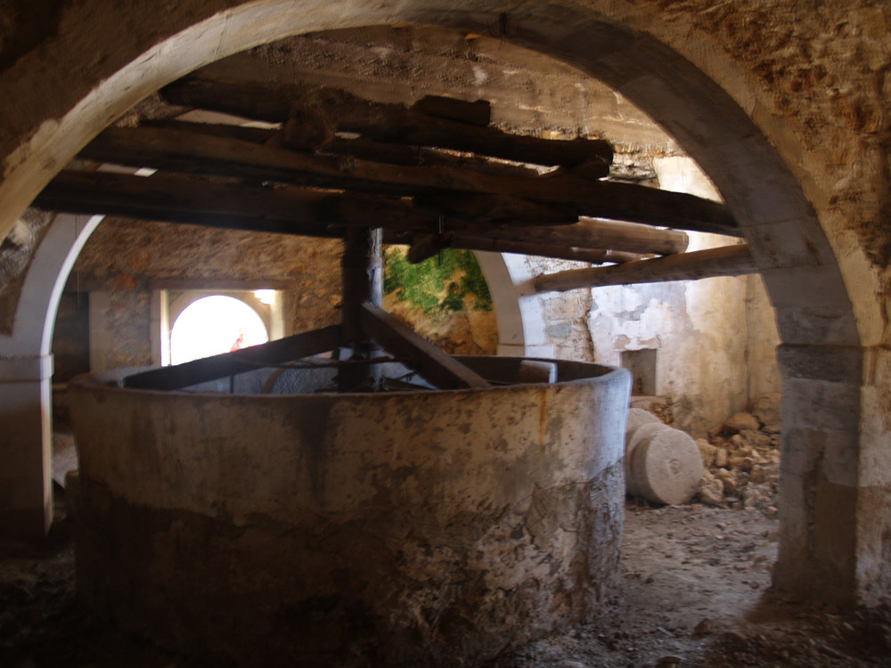 Σύμφωνα με την τεχνική έκθεση του επιβλέποντος Αρχιτέκτονα Μηχανικού της Τεχνικής Υπηρεσίας κ. Χαρ. Κυδωνάκη , το διώροφο ελαιοτριβείο γνώρισε έντονη δράση κατά την ύστερη Ενετική και Οθωμανική περίοδο. Διέθετε χώρο παραγωγής και επεξεργασίας της πρώτης ύλης της ελιάς με τσιμεντένιες σκάφες συλλογής του καρπού, του πολτού της ελιάς και του λαδιού, τον βασικό μηχανισμό με τις μυλόπετρες ασβεστόλιθου, το φούρνο και το πατητήρι ,το οποίο εξυπηρετούσε την κατοικία του ιδιοκτήτη που βρίσκονταν στον πρώτο όροφο καθώς και τα ξύλινα δοκάρια. Ο δεύτερος χώρος στο ισόγειο λειτουργούσε ως αποθήκη κι ήταν εξοπλισμένος με τα πυθάρια αποθήκευσης του λαδιού.