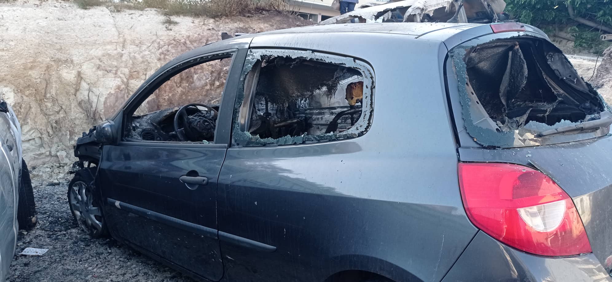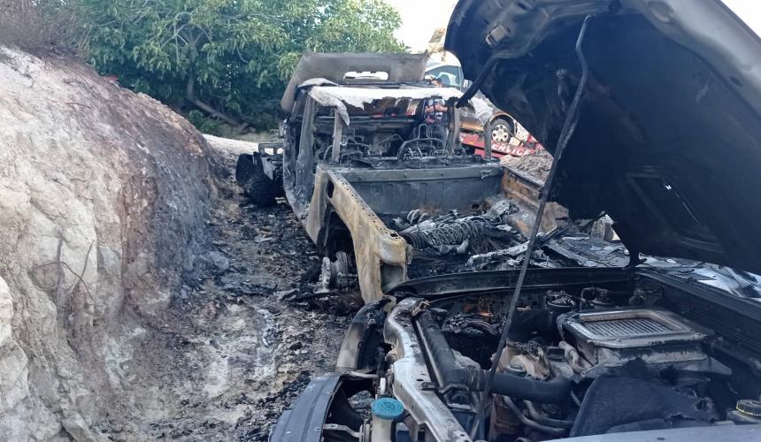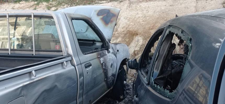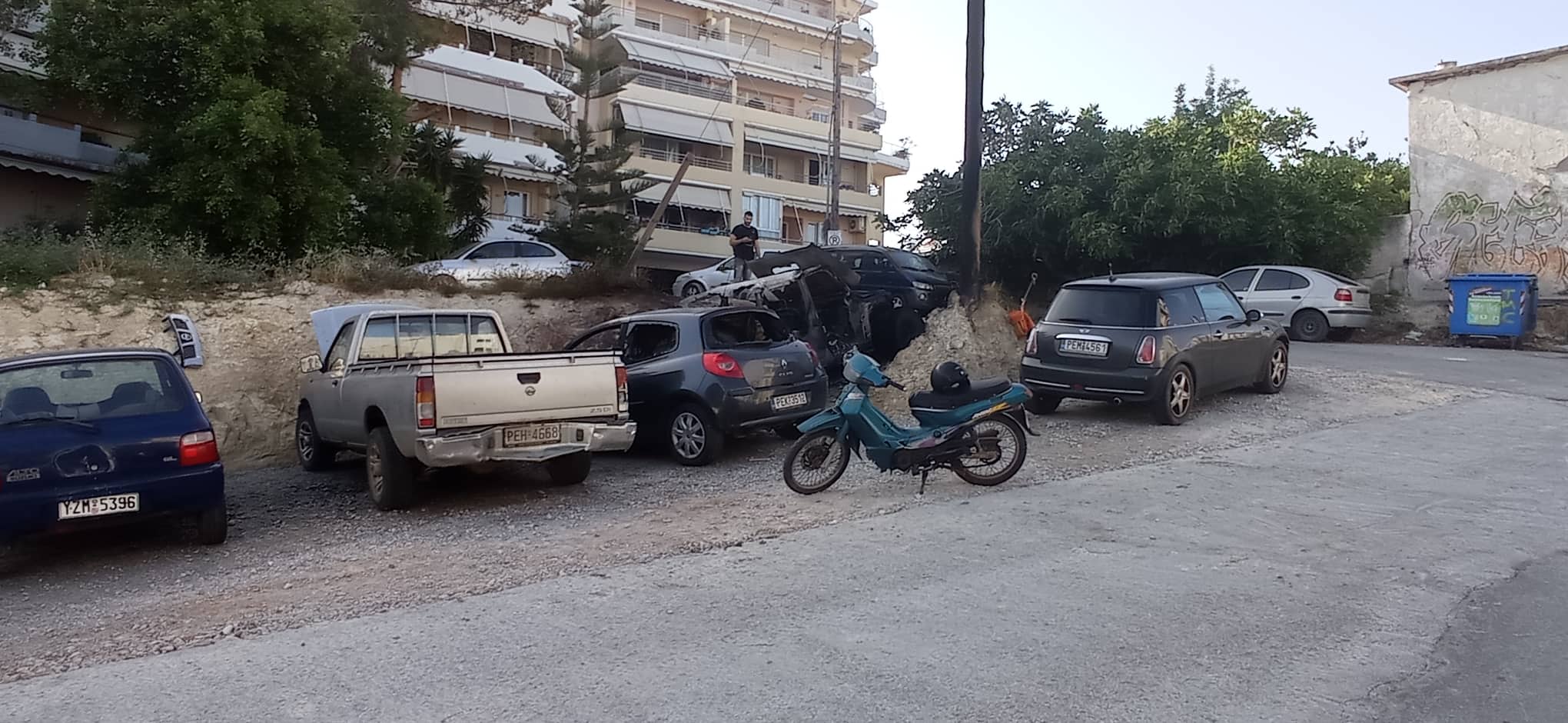 Η φωτιά ξεκίνησε από ένα τζιπ και απλώθηκε ακολούθως στα διπλανά οχήματα αλλά και σε ένα στύλο της ΔΕΗ.