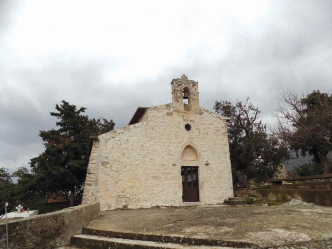 Ο ναός είναι αφιερωμένος στα Εισόδια της Θεοτόκου και φέρει εξαιρετικές τοιχογραφίες του 14ου αιώνα. Δυστυχώς το κτίσμα έχει υποστεί μεγάλες φθορές και εσωτερικά θυμίζει περισσότερο στάβλο. Μέρος της σκεπής έχει καταρρεύσει και έχει σκεπαστεί με ένα μεγάλο νάιλον για μια κάποια προστασία. Εξωτερικά σώζεται αρκοσόλιο, δηλαδή Ενετικός τάφος που συνήθως έβαζαν τον κτήτορα του ναού.