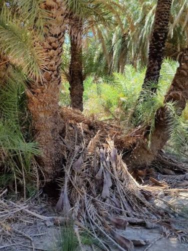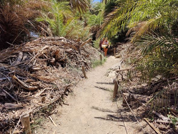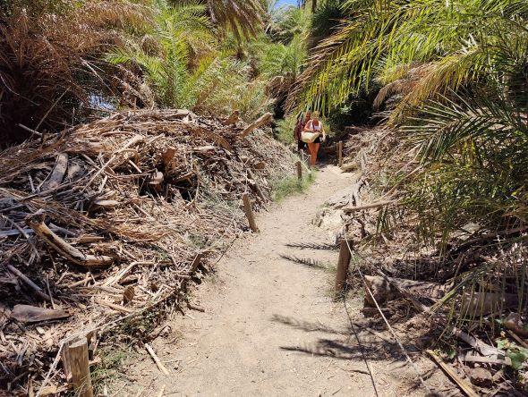 Διαλυμένα μονοπάτια, πεσμένοι φοίνικες και κομμένα κλαδιά τοποθετημένα δίπλα στα μονοπάτια ακριβώς κάτω από κορμούς των φοινίκων (σαν προσάναμμα), έτοιμα να το λαμπαδιάσουν σε περίπτωση πυρκαγιάς.