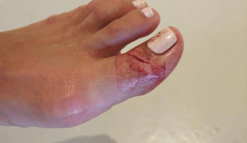 Δυστυχώς, όπως φαίνεται και στην φωτογραφία, ενώ απολάμβανε το μπάνιο της στην όντως θαυμάσια παραλία του νότου του νομού μας ένα λαγόψαρο την προσέγγισε και την δάγκωσε, τραυματίζοντας την .