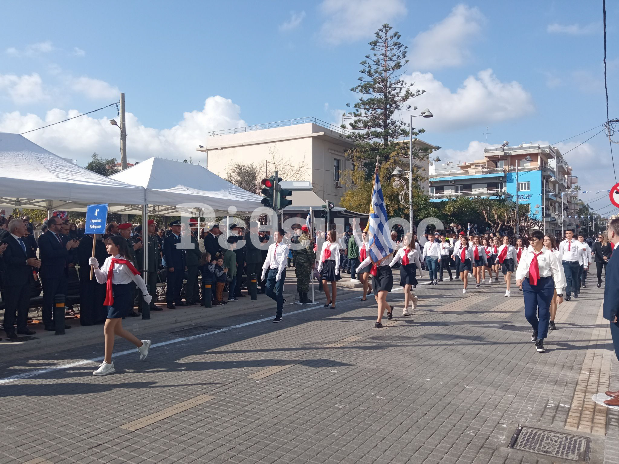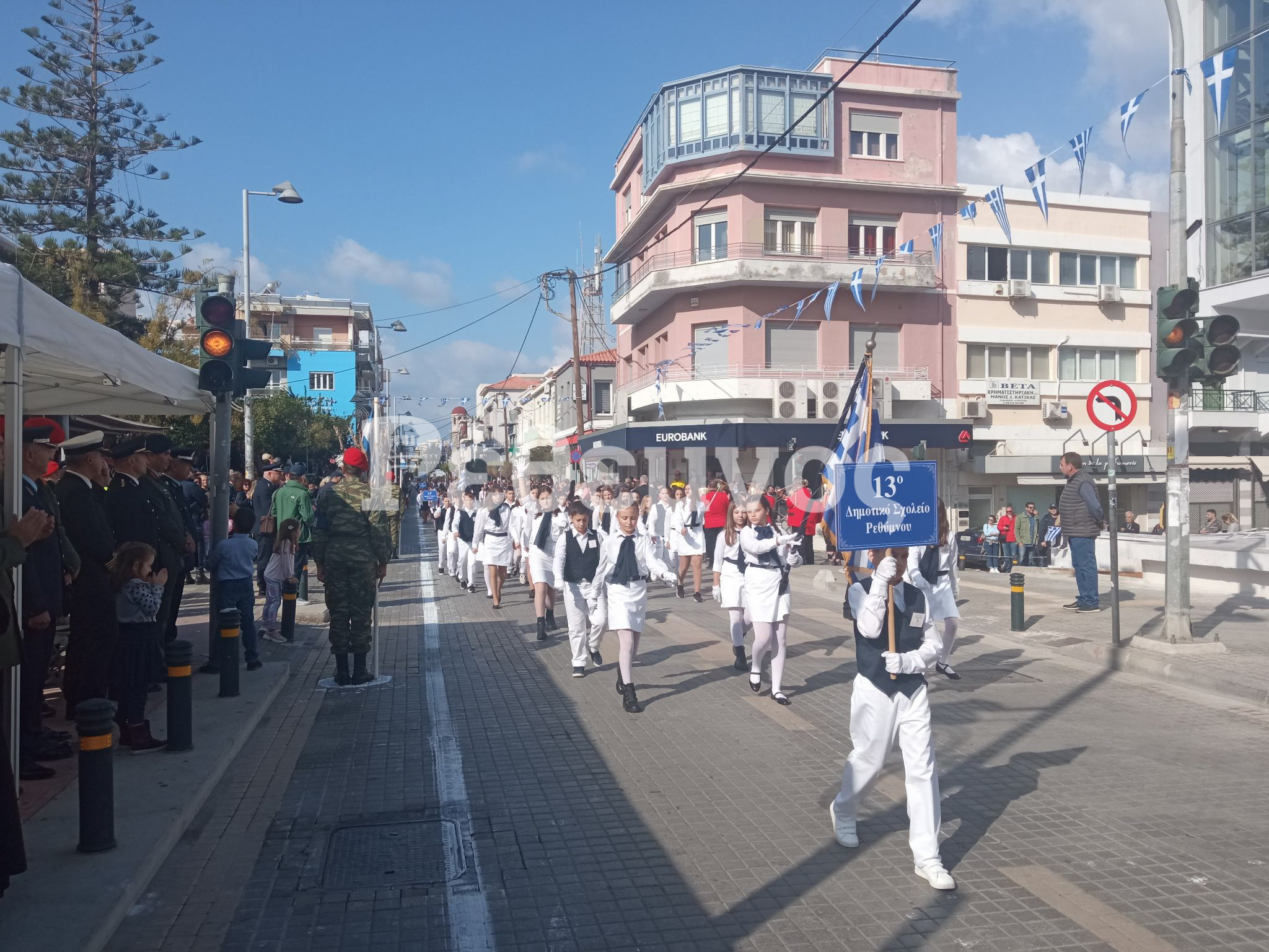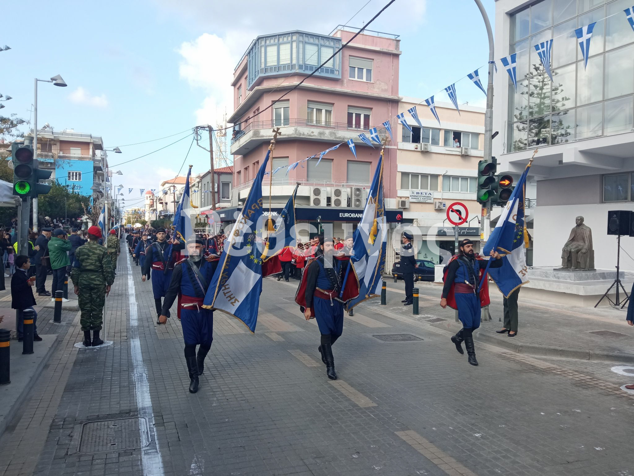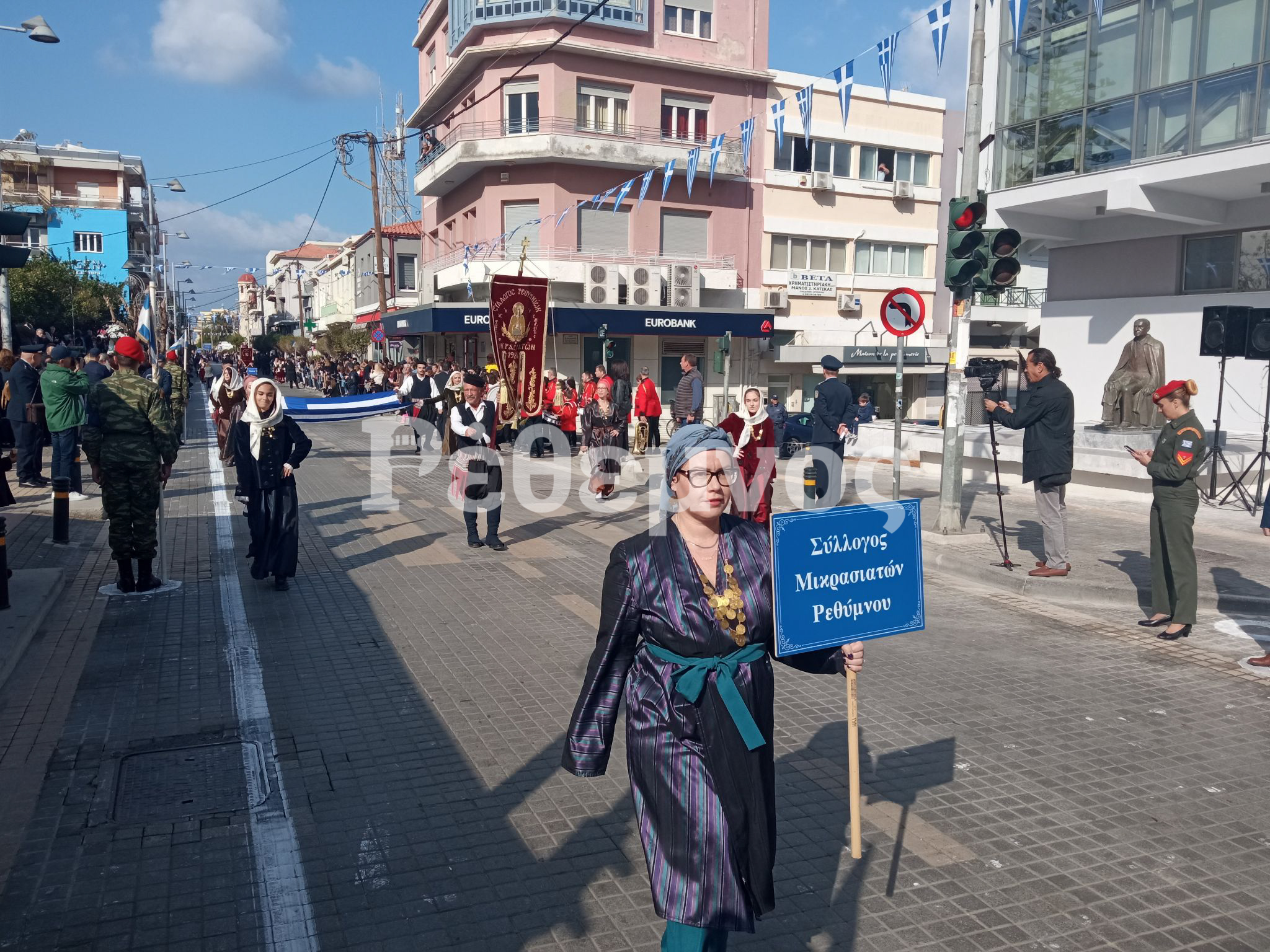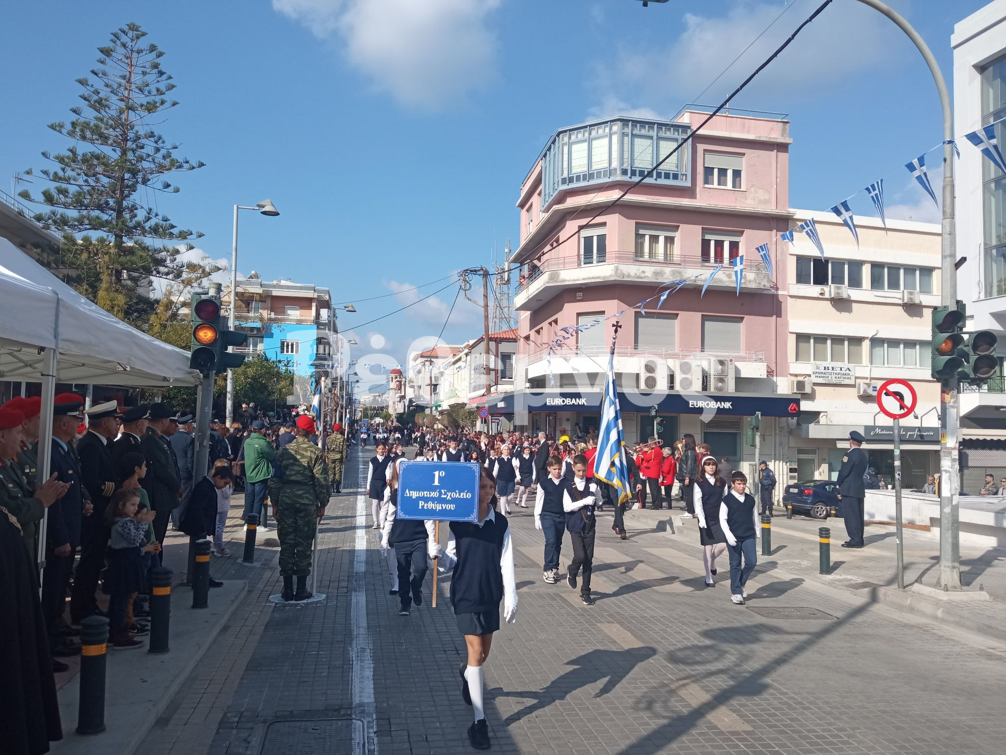 Οι μαθητές, οι λαογραφικοί και παραδοσιακοί σύλλογοις αλλά και αγήματα των ενόπλων δυνάμεων και των σωμάτων ασφαλείας έστειλαν ηχηρό μήνυμα τιμής και δόξας για την μεγάλη ιστορική στιγμή του Ρεθύμνου.