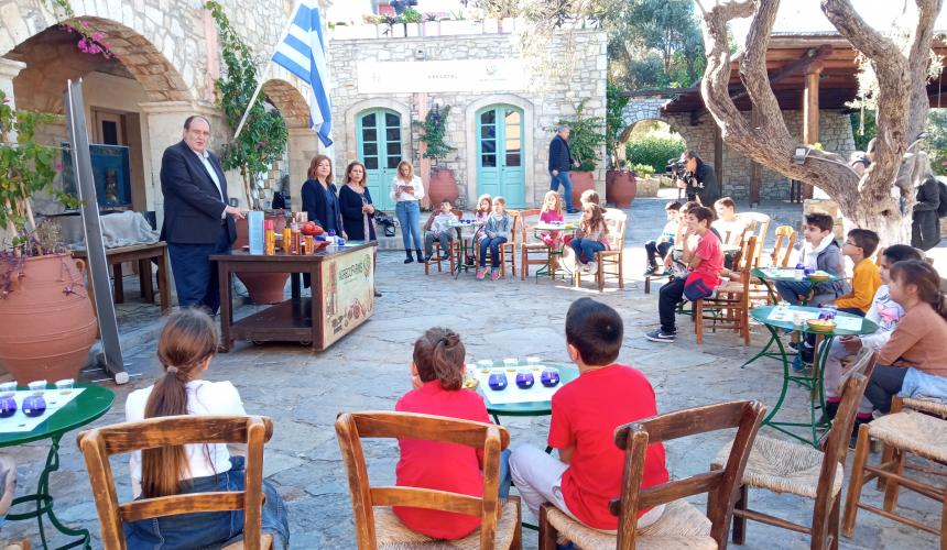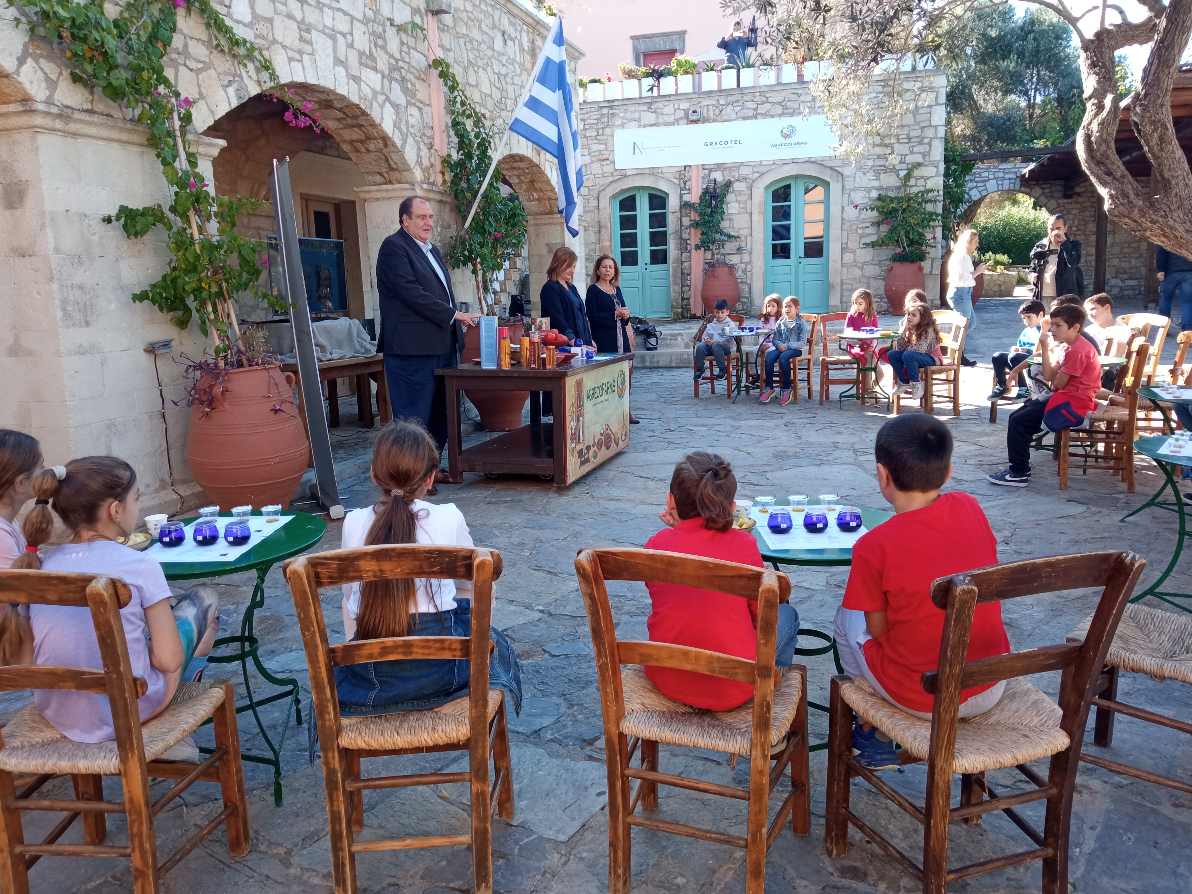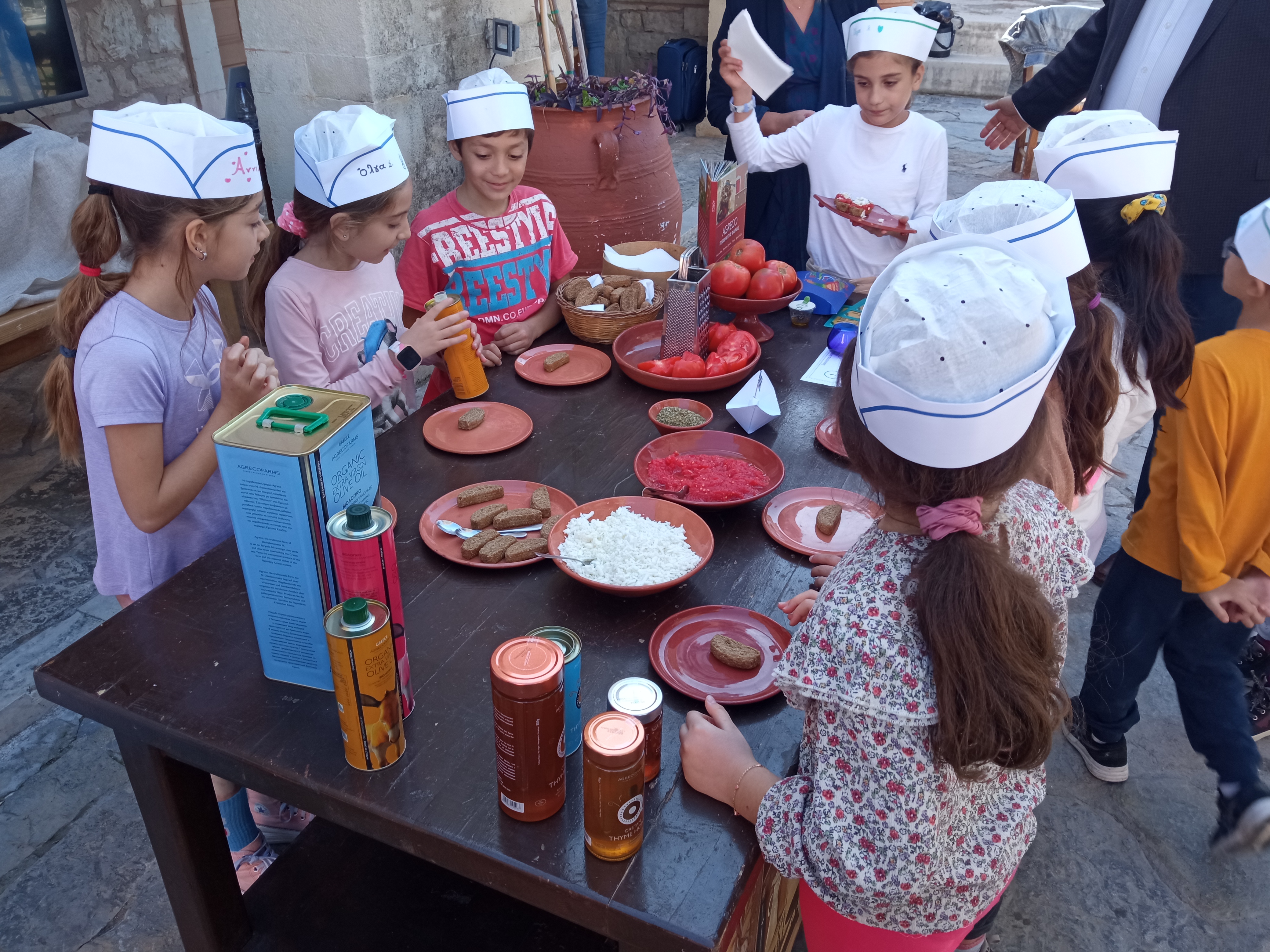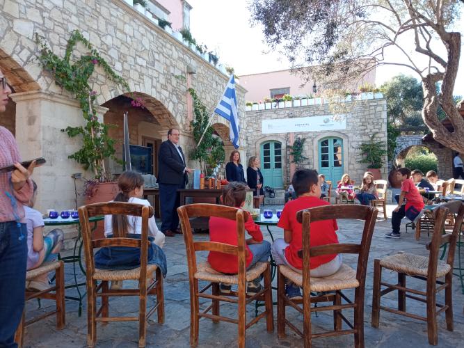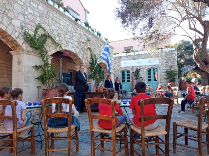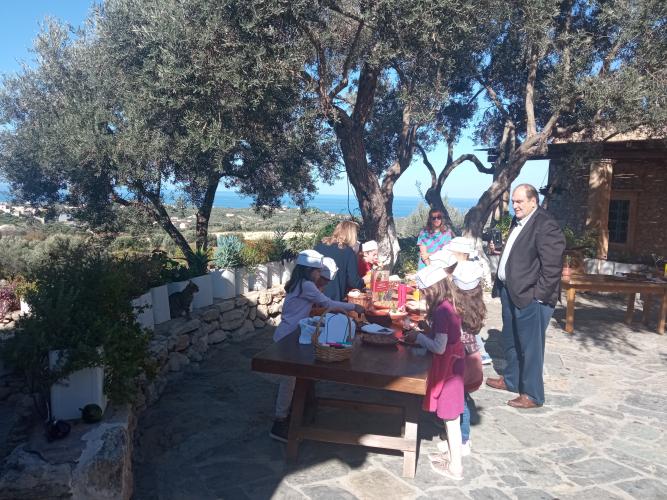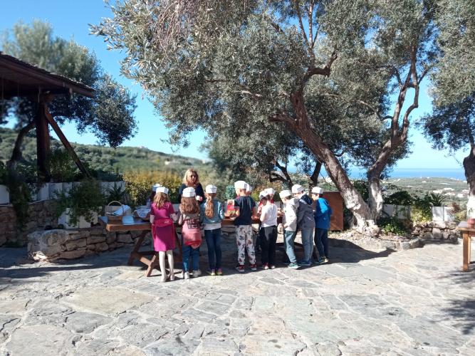Συνοδευόμενοι οι μαθητές από τις δασκάλες τους κ. Δώρα Δελή και Βίκυ Καραγιάννη, επισκέφθηκαν το κτήμα Agreco της Grecotel όπου ο Director of Operations – Grecotel Hotels & Resorts κ. Δημήτρης Καλαϊτζιδάκης είχε οργανώσει εκδήλωση γευσιγνωσίας αλλά και παρασκευής κρητικών γευμάτων με χρήση ελαιολάδου.