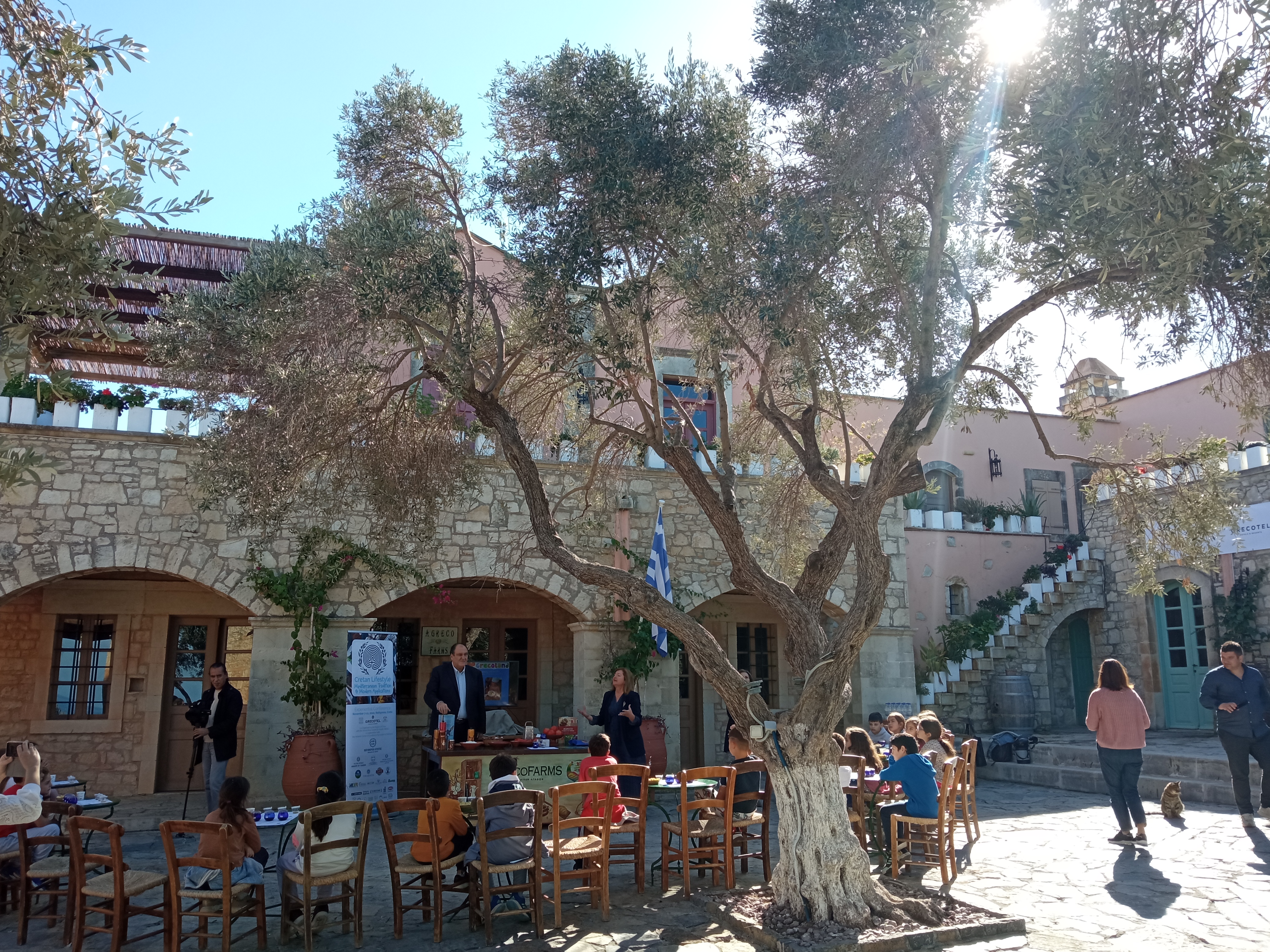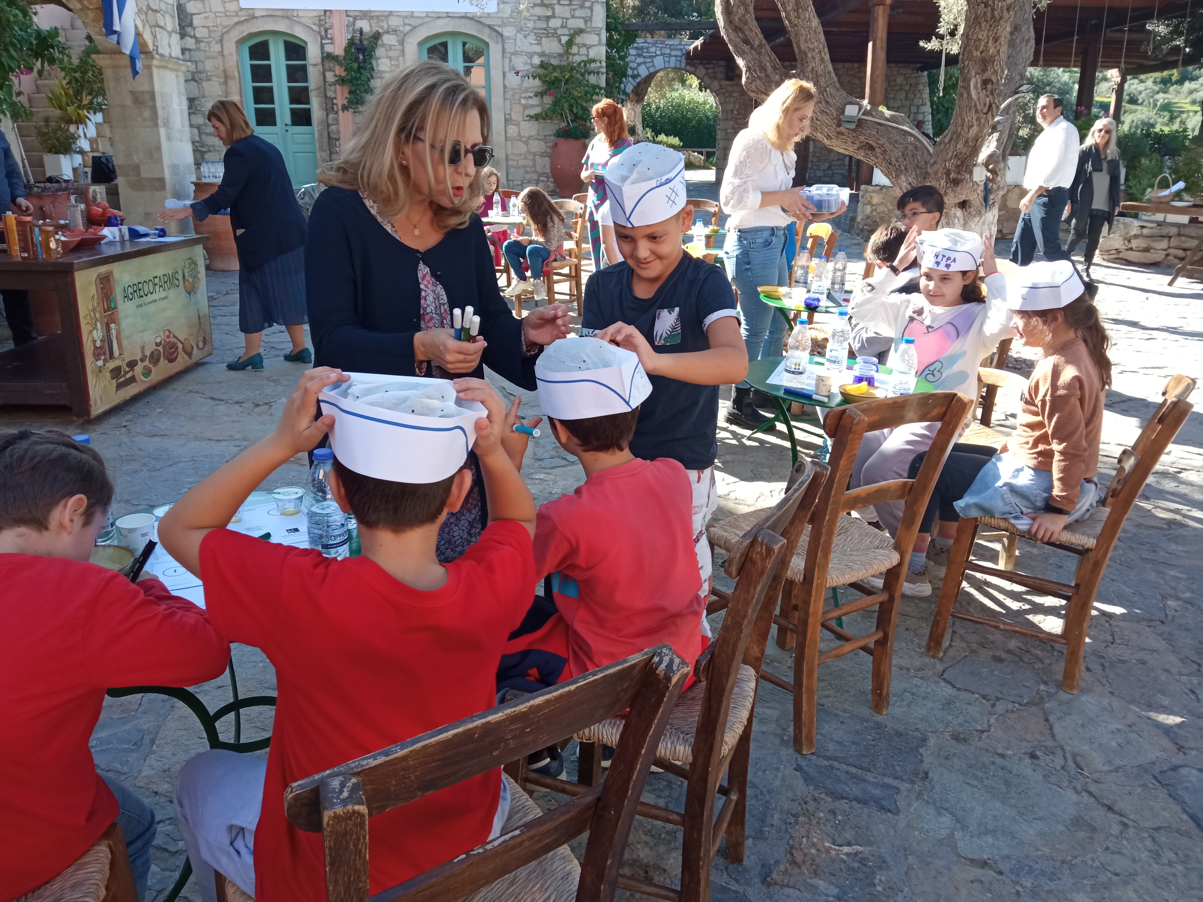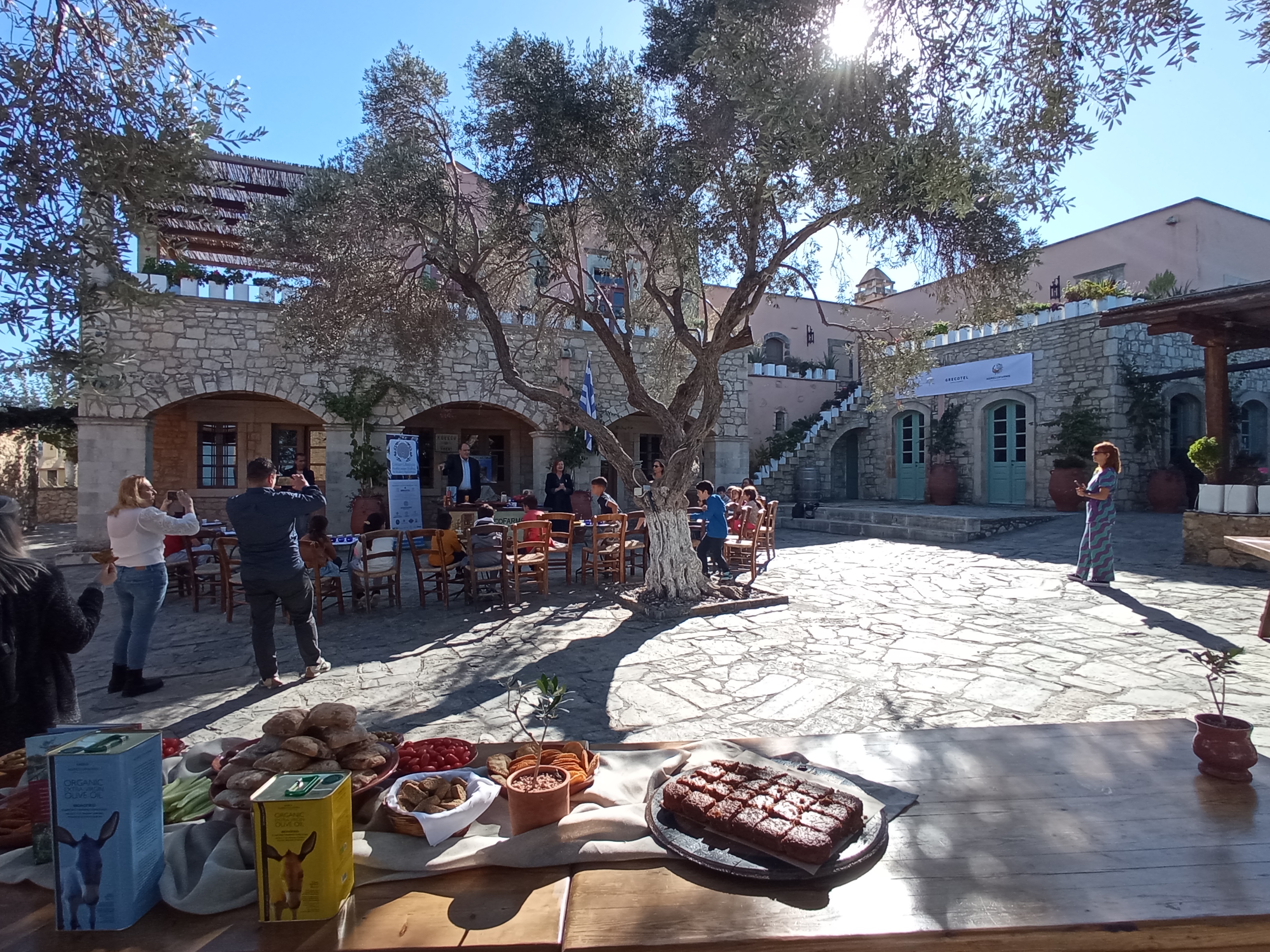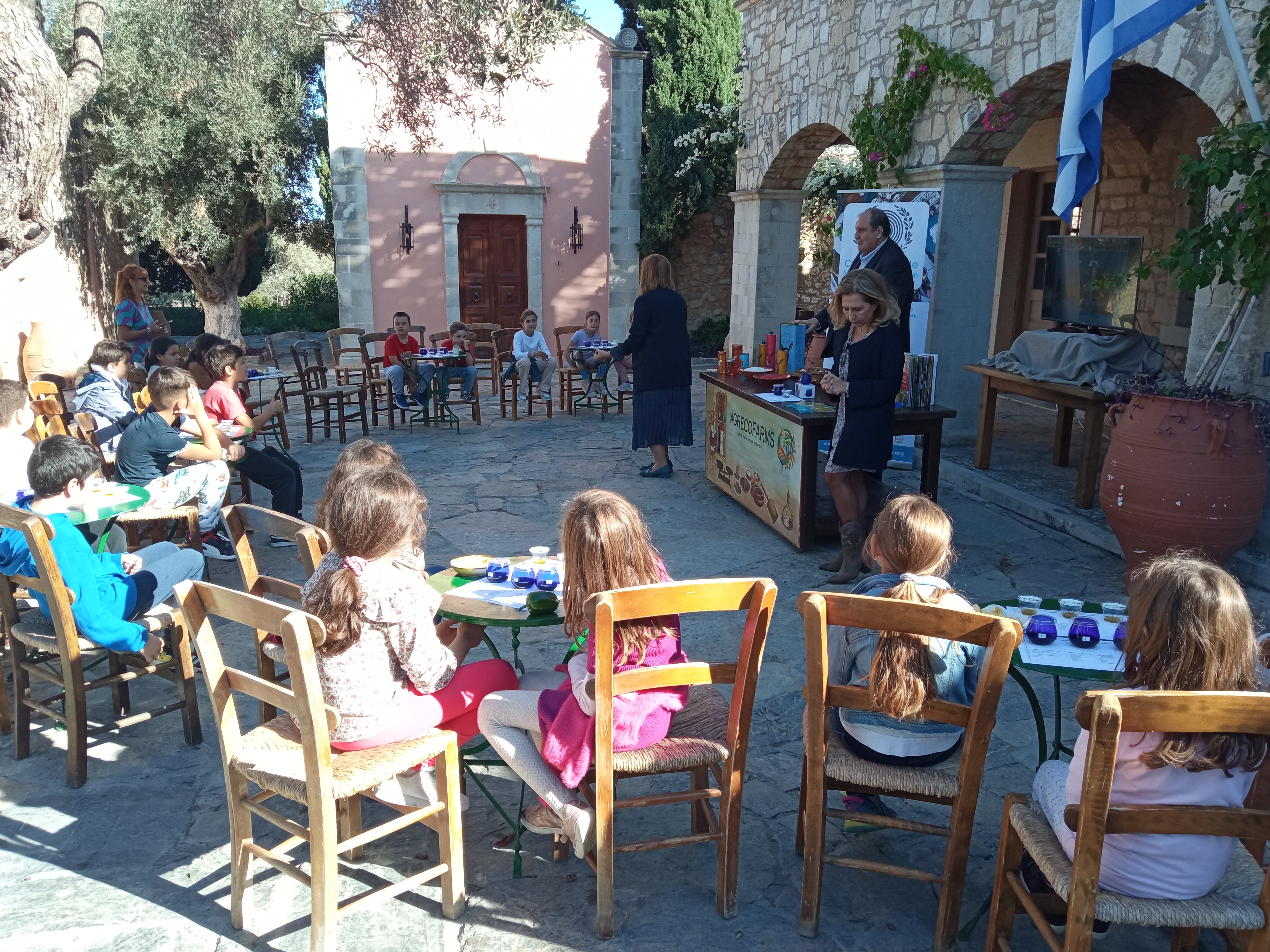 Συνοδευόμενοι οι μαθητές από τις δασκάλες τους κ. Δώρα Δελή και Βίκυ Καραγιάννη, επισκέφθηκαν το κτήμα Agreco της Grecotel όπου ο Director of Operations – Grecotel Hotels & Resorts κ. Δημήτρης Καλαϊτζιδάκης είχε οργανώσει εκδήλωση γευσιγνωσίας αλλά και παρασκευής κρητικών γευμάτων με χρήση ελαιολάδου.