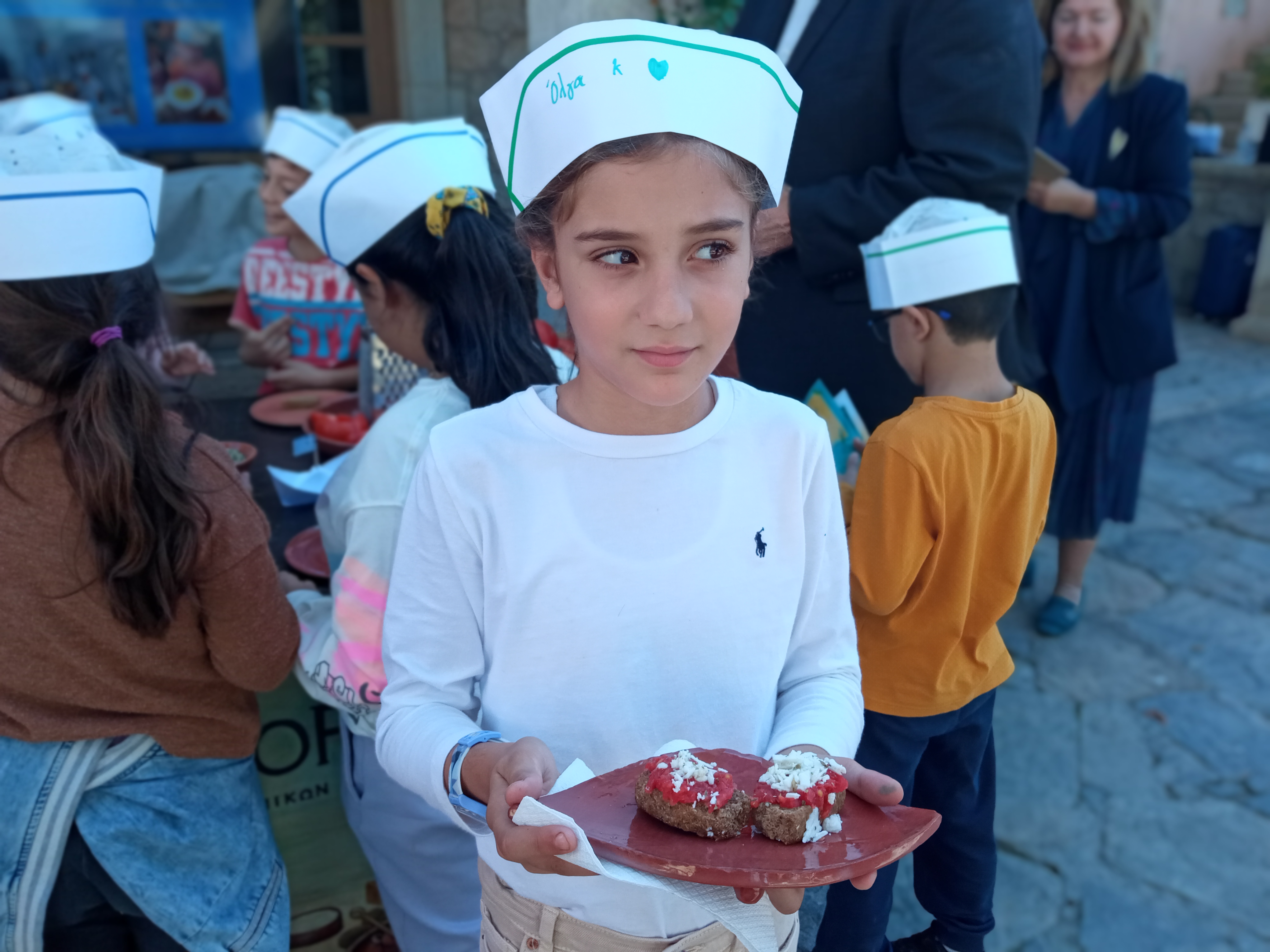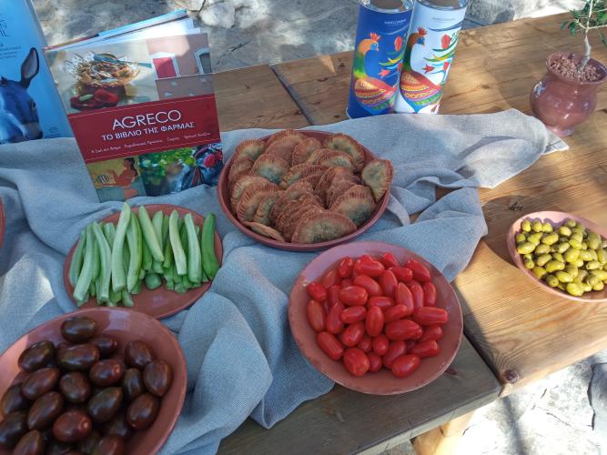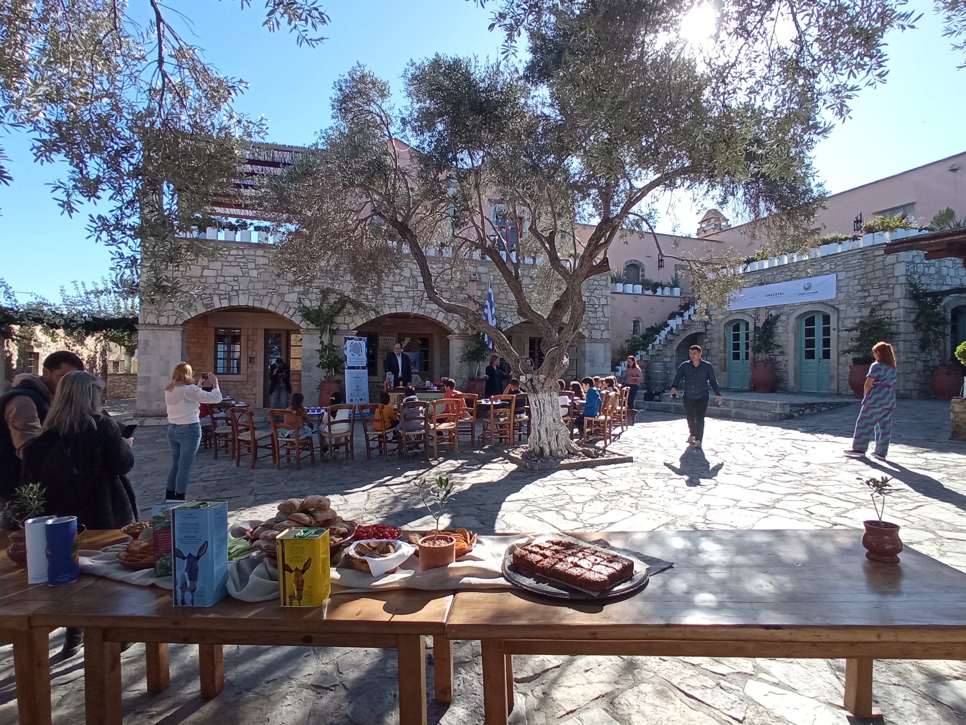 Παράλληλα δοκίμασαν μακαρόνια με λάδι, κέικ με ελαιόλαδο και όχι βούτυρο, καλιτσούνια, λαδόψωμο, ελιόψωμο, πράσινες κοπανιστές ελιές και πολλά νόστιμα βιολογικά λαχανικά που παράγονται στην Agreco Farm της Grecotel.