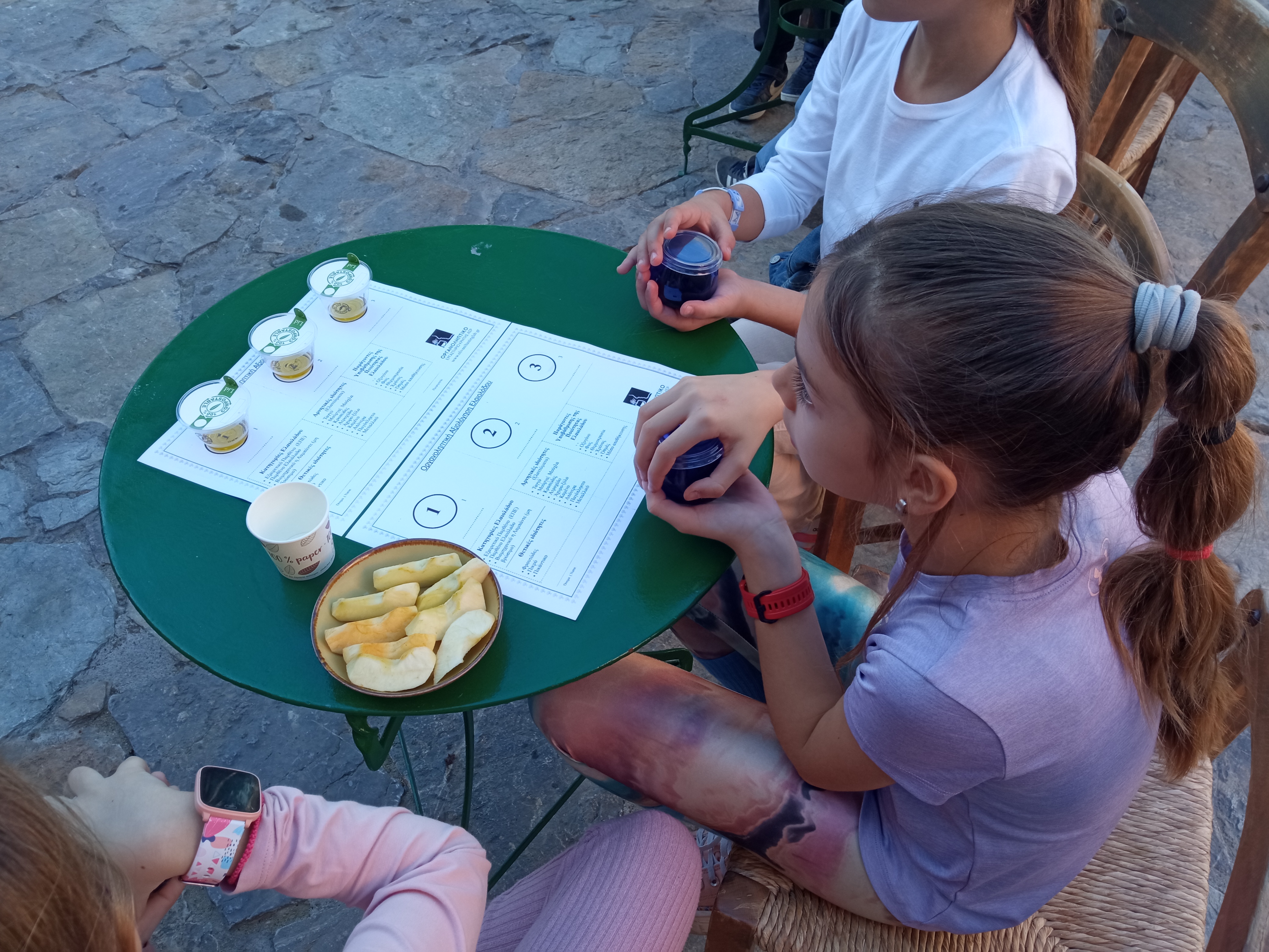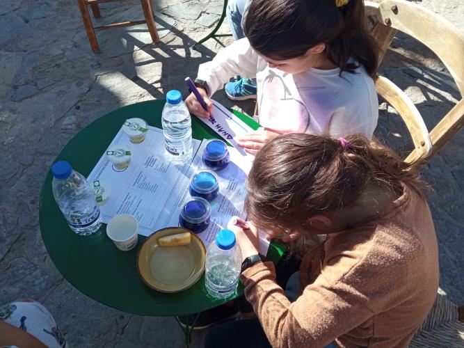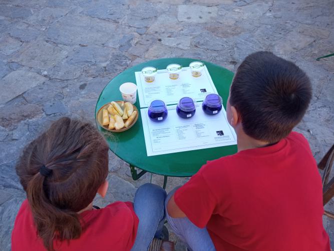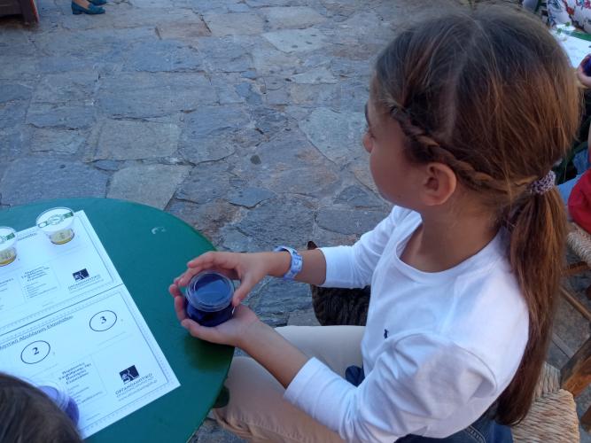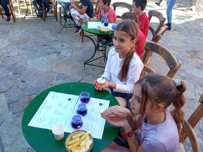 Εκεί, η γεωπόνος, υπεύθυνη του Οργανοληπτικού Εργαστηρίου Αξιολόγησης Ελαιολάδου του Α.Σ. Ρεθύμνου, γευσιγνώστρια και κριτής σε διεθνείς διαγωνισμούς ελαιολάδου κ. Ελευθερία Γερμανάκη, μίλησε στα παιδιά για το σημαντικό τοπικό προϊόν, τους καθοδήγησε σε μια κανονική γευστική δοκιμή διαφορετικών ειδών ελαιολάδου και τους μίλησε για τις διατροφικές αξίες της ελιάς και του λαδιού που παράγονται στο νησί μας.