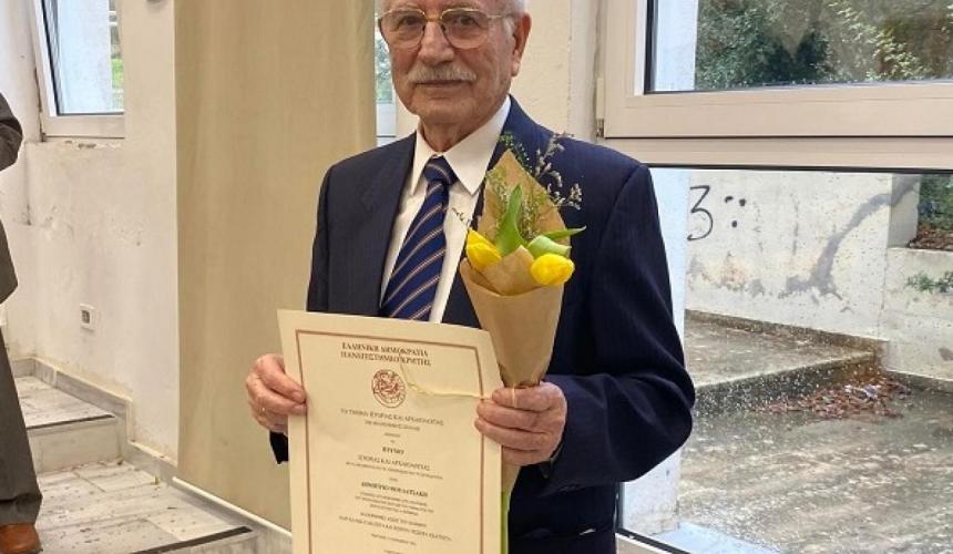 Πτυχιούχος του τμήματος Ιστορίας και Αρχαιολογίας του Πανεπιστημίου Κρήτης, είναι πλέον και επίσημα ο 88χρονος τυπογράφος κ.Δημήτρης Μουδατσάκης, ο οποίος παρέλαβε με μεγάλη συγκίνηση, εν μέσω θερμών χειροκροτημάτων, το πτυχίο του σε ειδική εκδήλωση που οργάνωσε η Σχολή στο Ρέθυμνο για τους νέους απόφοιτους.