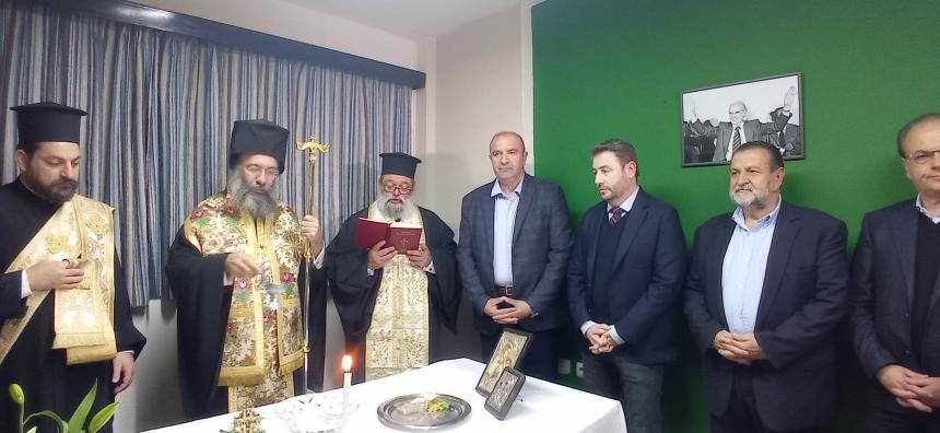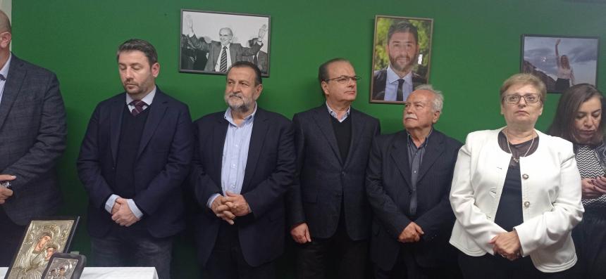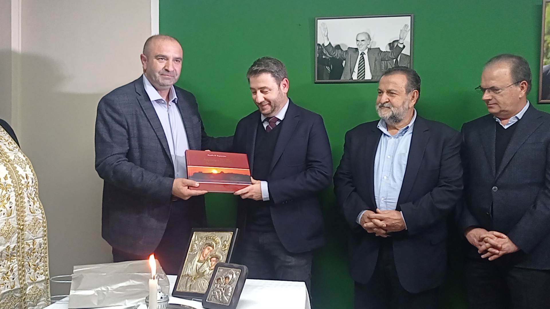Τον κ. Ανδρουλάκη καλωσόρισε στα γραφεία και τον ευχαρίστησε για την παρουσία του εκεί ο γραμματέας της Ν Ε. ΠΑΣΟΚ - ΚΙΝΑΛ Μιχάλης Σαρρής.