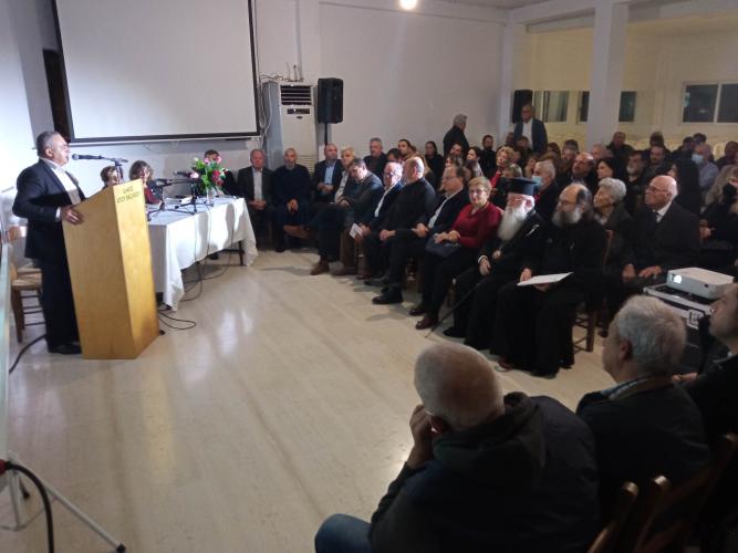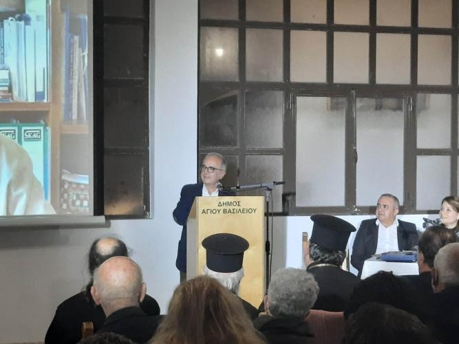 "Δεν έχω λόγια να ευχαριστήσω εσάς γιατί αψηφήσατε τον καιρό και την καταιγίδα και να έλθετε μέχρι εδώ για να παρευρεθείτε στην εκδήλωση του Δήμου Λάμπης. Ολοι σας αφήσατε την ξεκούραση σας αλλά και προγραμματισμένες συναντήσεις για να έλθετε στην Κοξαρέ. Ιδιαίτερες ευχαριστίες στο Σεβασμιώτατο Μητροπολίτη Λάμπης, Συβρίτου και Σφακίων, τον κ. Υπουργό, τους Δημάρχους Ρεθύμνου και Αμαρίου και όλους τους εκπροσώπους των θεσμικών και πολιτισμικών φορέων του Νομού. Ιδιαίτερες ευχαριστίες στον Δήμαρχο κ. Ταταράκη και στο Δημοτικό Συμβούλιο για την πρωτοβουλία, την οργάνωση αυτής της εκδήλωσης και την απονομή αυτής της τιμής στο πρόσωπο μου. Είναι αλήθεια ότι η σημερινή μέρα συμπίπτει με πολλά άλλα γεγονότα σε ένα σημαντικό σταθμό της ζωής μου και οδηγούν ακόμη παραπέρα το στοχασμό που τον συνοδεύει. Άλλωστε, οι διαδρομές και οι σταθμοί είναι αυτοί που χαρακτηρίζουν τη ζωή κάθε ανθρώπου. Διαδρομές γνώσης και εξέλιξης οδηγούν στην ολοκλήρωση και στη μεταμόρφωση του προσώπου