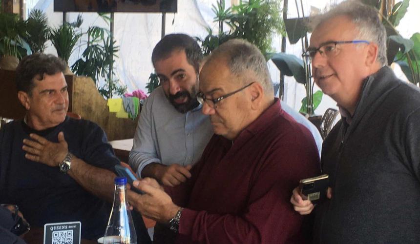 Έτσι σε γνωστό καφέ της πόλης είδαμε να κάθονται παρέα ο Θοδωρής Δουλουμπέκης, ο Μίνωας Αλεφαντινός, ο Νίκος Μολδοβανίδης, ο Νίκος Ξυπολιτάς και την φωτογραφία τράβηξε ο Γιάννης Λίτινας!