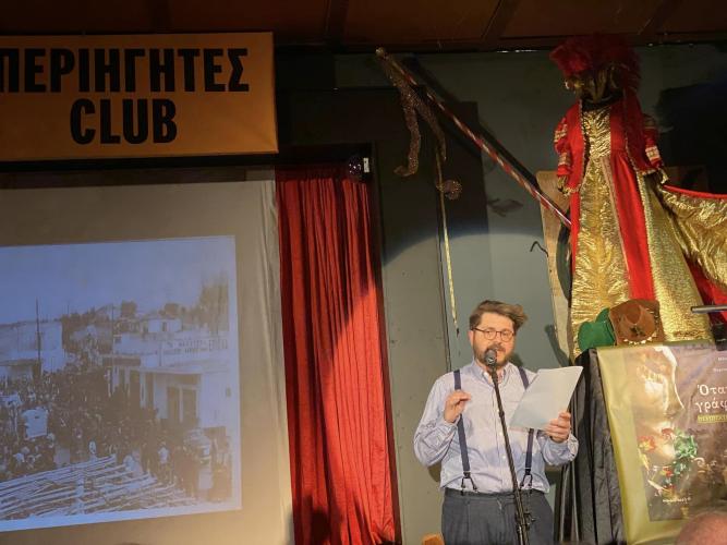 Για το ιστορικό υλικό που διαχειρίστηκαν μίλησε ο Μάνος Γοργοράπτης ενώ για τους ανθρώπους της περιηγητικής λέσχη που την υπηρέτησαν με μεράκι και φαντασία αναφέρθηκε η σημερινή πρόεδρος Άννα Τζανιδάκη που δεν ξέχασε κανένα από όσους υπηρέτησαν την θέση του προέδρου και όχι μόνο. Ο λόγος και η σκέψη των περισσότερων έμεινε στον Κώστα Κανά, τον αξέχαστο στυλοβάτη της Περιηγητικής, ο οποίος συνέβαλε τα μέγιστα στις δράσεις του φορέα και κυρίως στην Γιορτή Κρασιού και το Ρεθεμνιώτικο Καρναβάλι.