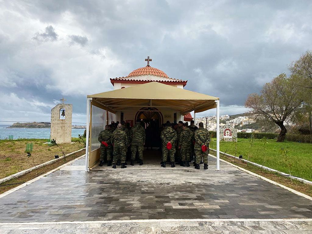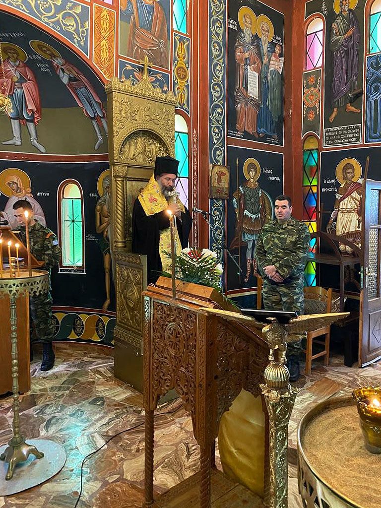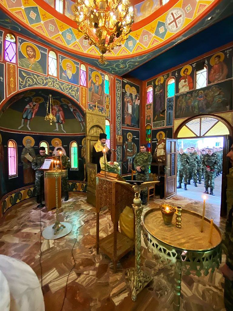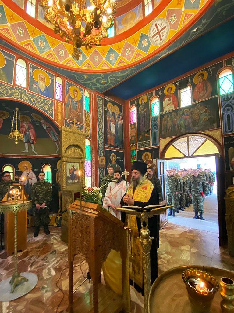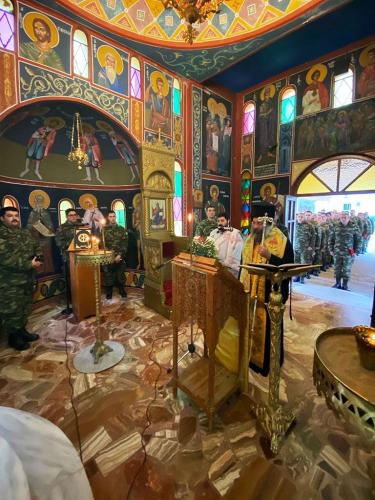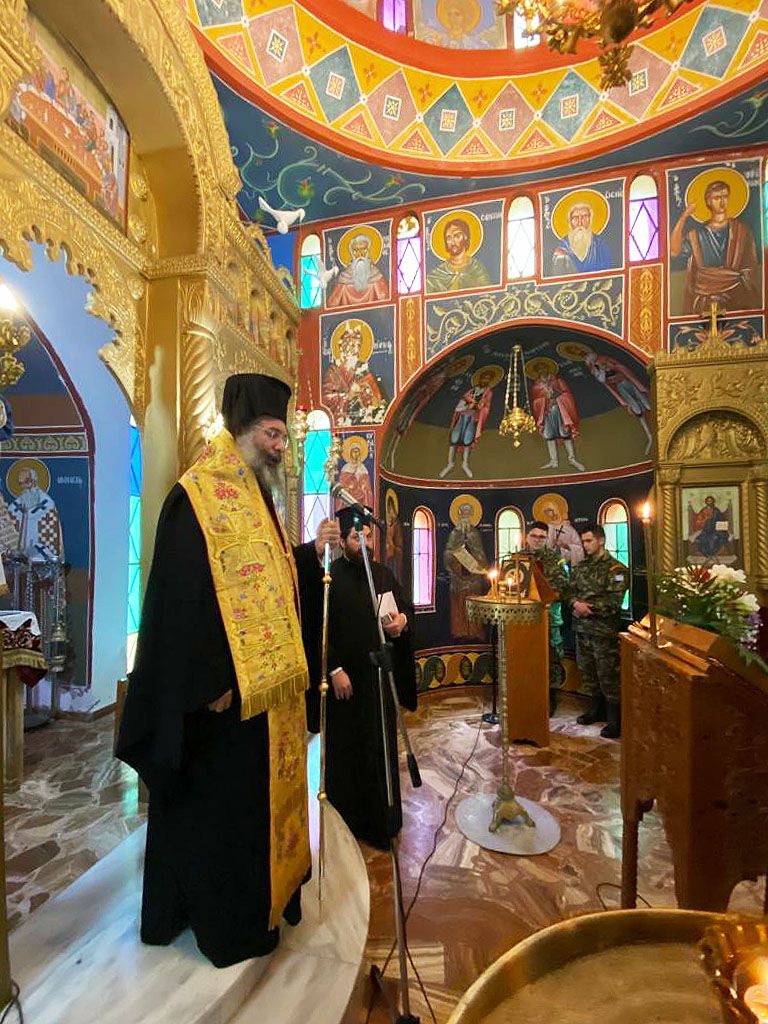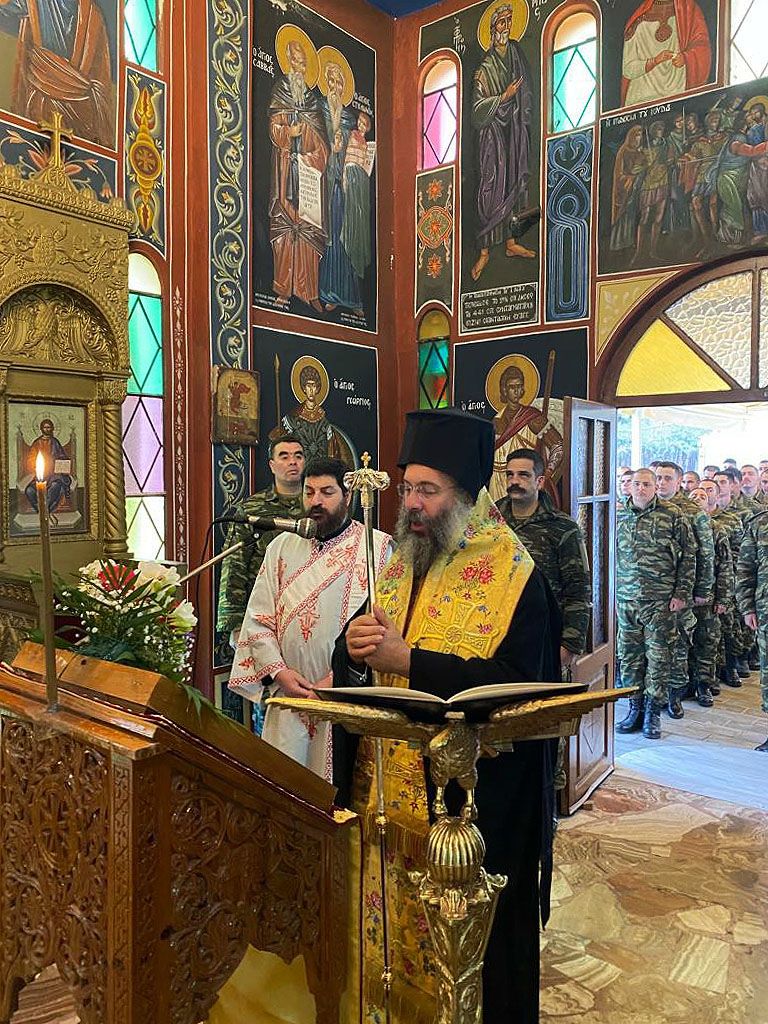 Ο Επίσκοπός μας μίλησε κατάλληλα προς τους στρατιώτες, τονίζοντας τη διαρκή παρουσία και σκέπη της Υπερμάχου του Γένους Στρατηγού και την ενδυνάμωση του Φιλοχρίστου Στρατού και καθενός ανθρώπου που αγωνίζεται τίμια και φιλότιμα στον αγώνα της ζωής για τα ιδανικά και την αληθινή εν Χριστώ ελευθερία.