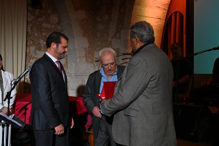 Είναι λίγοι οι άξιοι, που υπηρετούν από το δημόσιο βίο τους ανθρώπους. Όπως εσύ. Που από το μεγάλο περίσσευμα της καρδιάς σου μπλέχτηκες στα κοινά για να αναδείξεις το σπουδαίο Κρητικό πολιτισμό. Με αυτή τη χαρακτηριστική Μαεστρία, την πραότητα, τη λογική, την ικανότητα, βοήθησες και βοηθάς στη διατήρηση, την ανάδειξη, την εξέλιξη και τη διάδοση της μουσικής μας παράδοσης.