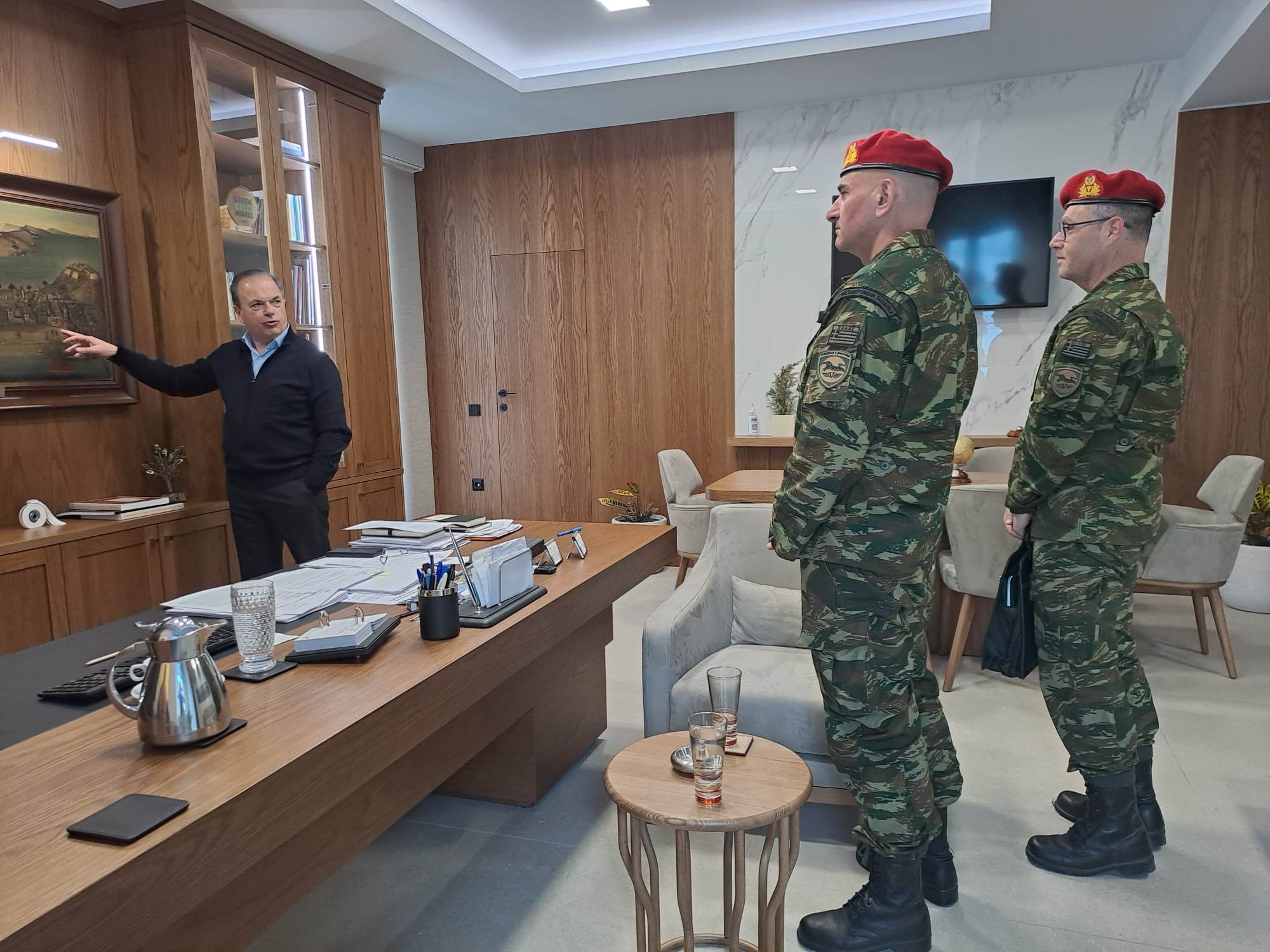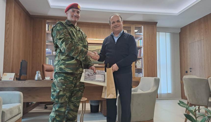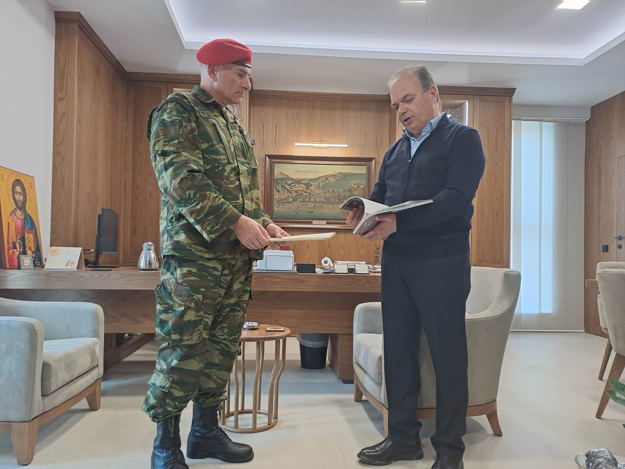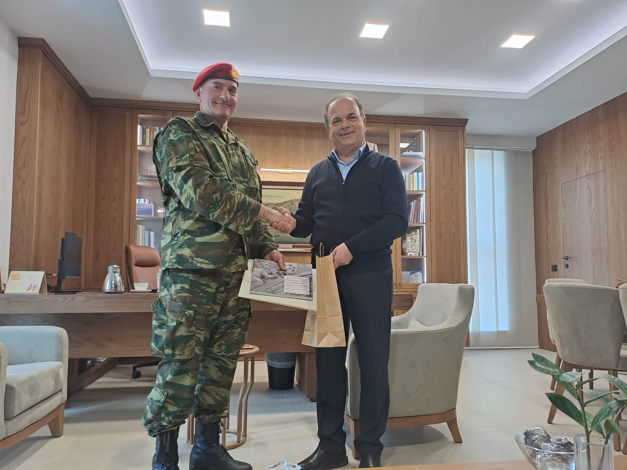 Το νέο Διοικητή της 5ης Αερομεταφερόμενης Μεραρχίας Κρητών κ. Μιχαήλ Πλουμή/ Ταξίαρχο, υποδέχθηκε σήμερα (4-4-’23) ο Δήμαρχος Ρεθύμνης Γιώργης Μαρινάκης, στο πλαίσιο εθιμοτυπικής επίσκεψης, με αφορμή την ανάληψη εκ μέρους του των νέων του καθηκόντων στην V Μεραρχία Κρητών.