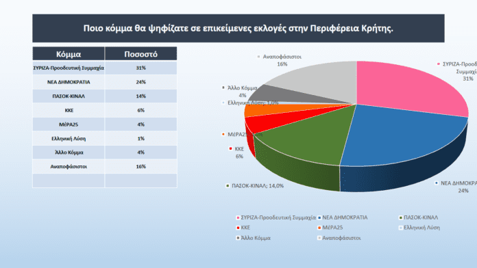 Όπως προαναφέραμε, ο ΣΥΡΙΖΑ φαίνεται να επικρατεί σε Χανιά και Ηράκλειο ενώ η Ν.Δ. σε Ρέθυμνο και Λασίθι. Η γενική εικόνα είναι να κερδίζει έδαφος το ΠΑΣΟΚ – ΚΙΝΑΛ σε ολόκληρο το νησί ενώ χάνει ποσοστά ο ΣΥΡΙΖΑ – ΠΣ παρά την τελική του επικράτηση.