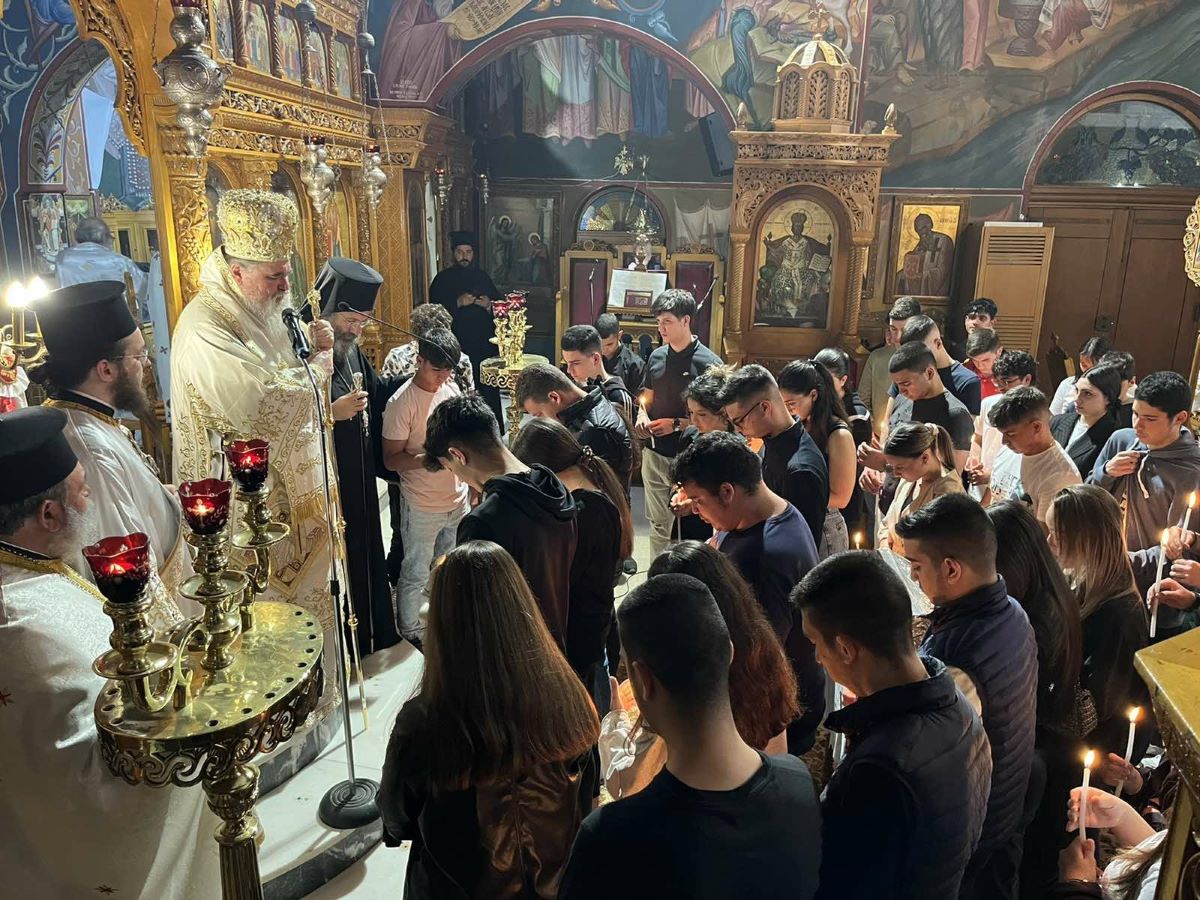 Προ της απολύσεως της Θείας Λειτουργίας, ο Σεβασμιώτατος Μητροπολίτης Νέας Κρήνης και Καλαμαριάς κ. Ιουστίνος ανέπεμψε ειδική δέηση και προσευχή για την ενίσχυση των μαθητών που θα διαγωνισθούν στις Πανελλαδικές Εξετάσεις και ευχήθηκε στις δεκάδες των υποψηφίων, που μετείχαν μετά των οικογενών τους στη νυκτερινή Θεία Λειτουργία, τη φώτιση του Θεού, προτρέποντας με λόγους καρδιακούς και εμπειρικούς τα παιδιά να διέλθουν και τούτο τον αγώνα της ζωής τους πράττοντας το καλύτερο δυνατό με σύνεση, ψυχραιμία και πίστη.