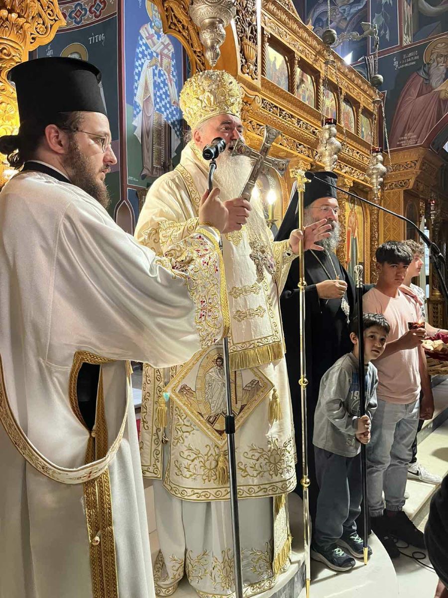 Το βράδυ της Τρίτης, 23ης Μαΐου 2023, επί τη αποδόσει της Εορτής του Πάσχα, ο Σεβασμιώτατος Μητροπολίτης Νέας Κρήνης και Καλαμαριάς κ. Ιουστίνος τέλεσε Αρχιερατική Θεία Λειτουργία στον Ιερό Ναό των Αγίων Τεσσάρων Μαρτύρων της πόλεως Ρεθύμνης, συμπροσευχομένου από του Ιερού Βήματος του Σεβασμιωτάτου Μητροπολίτου Ρεθύμνης και Αυλοποτάμου κ. Προδρόμου.