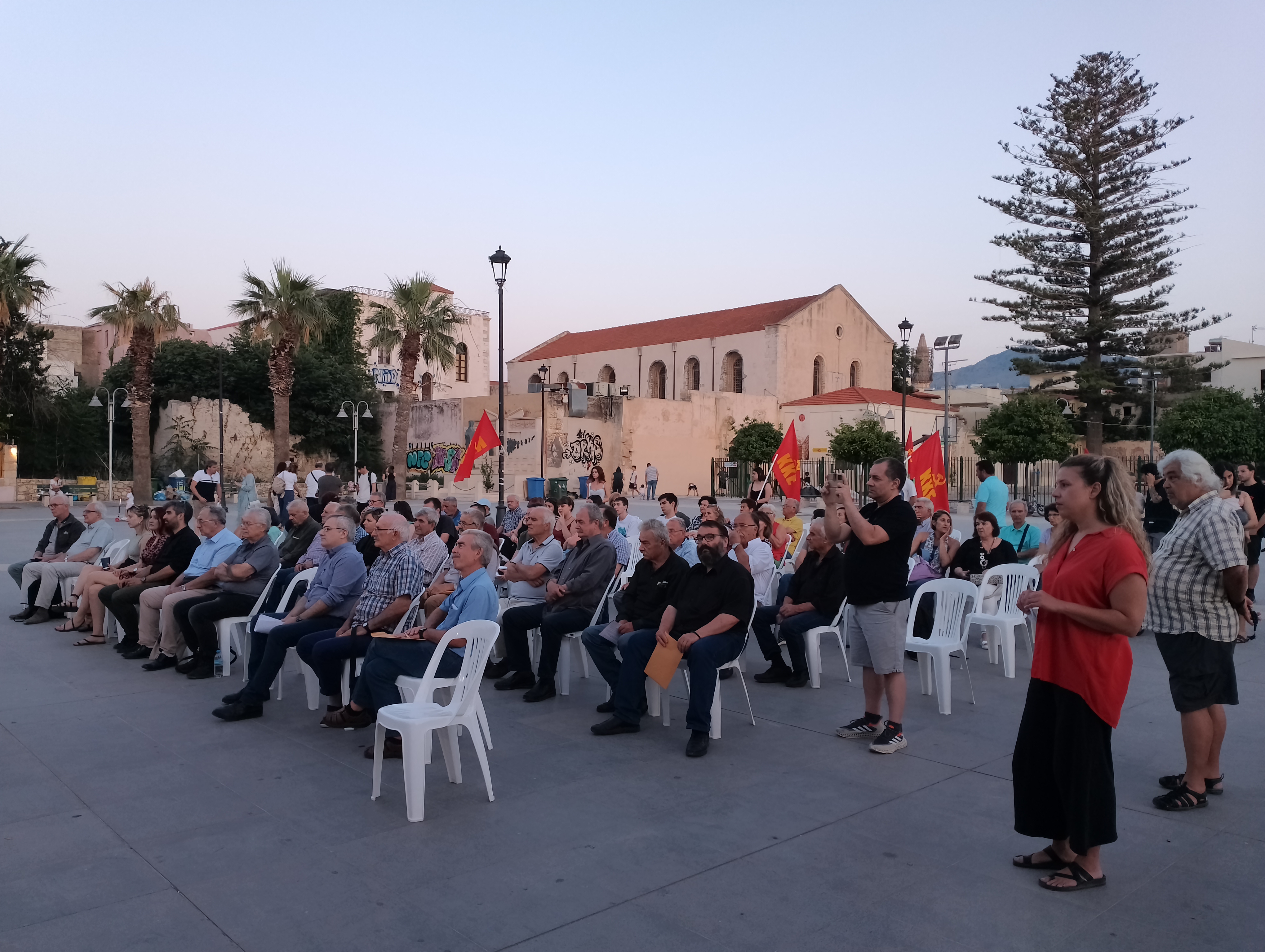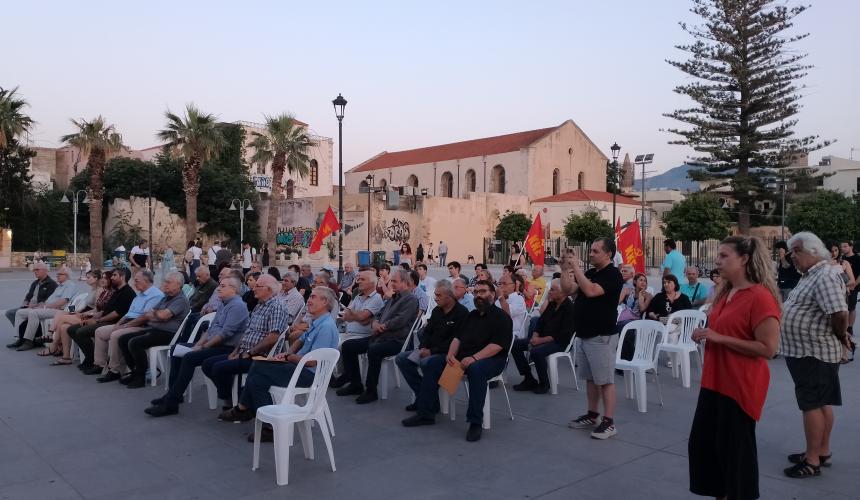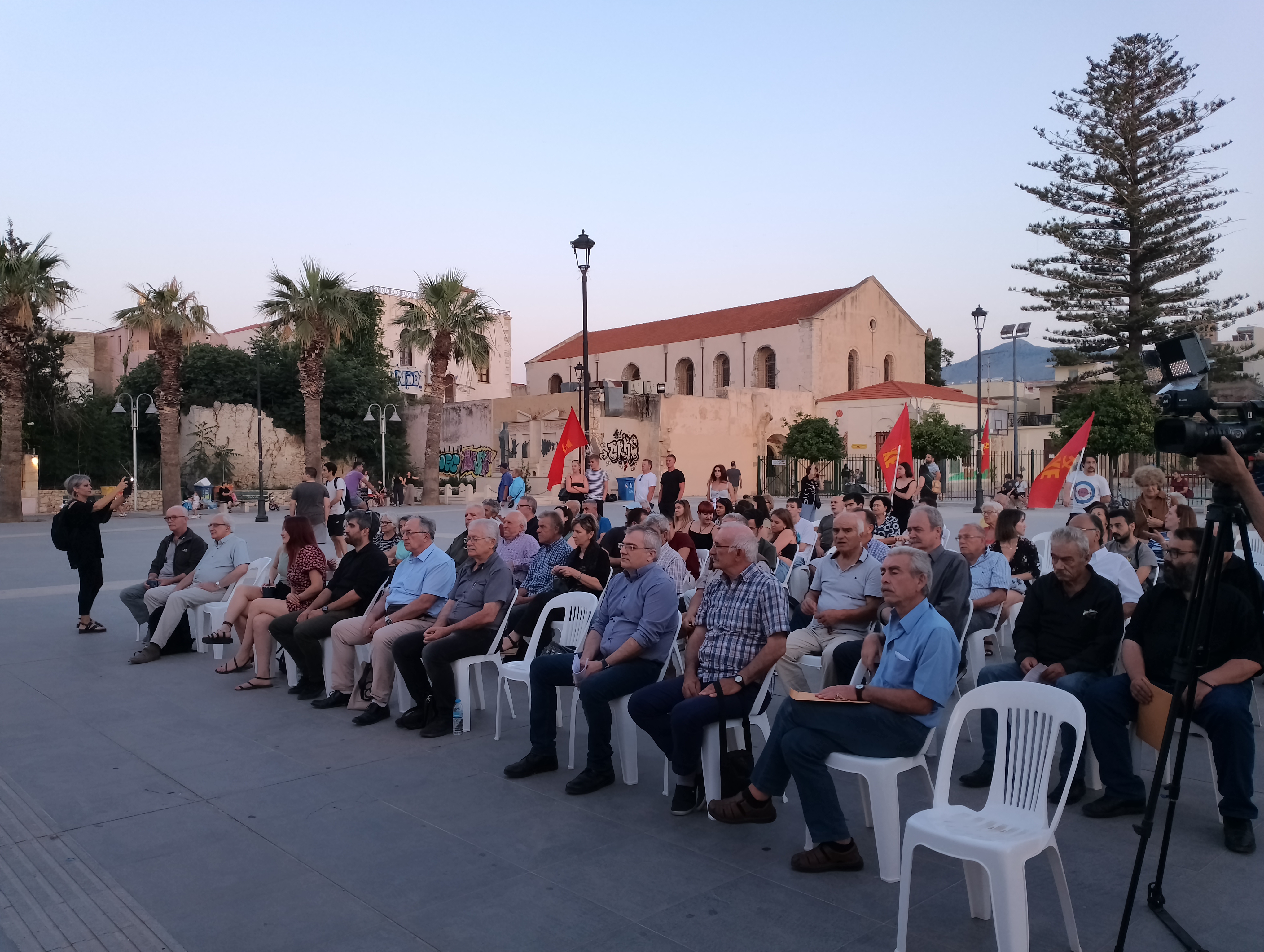 Μήνυμα στήριξης του ΚΚΕ που και στο Ρέθυμνο και σε όλη τη χώρα θα αποτελεί τη μοναδική δύναμη εργατικής – λαϊκής αντιπολίτευσης στην επόμενη Βουλή, απέστειλε η κεντρική προεκλογική συγκέντρωση του κόμματος την Δευτέρα 19 Ιουνίου, στην Πλατεία Μικρασιατών. Κεντρικός ομιλητής ήταν ο Κώστας Παπαδάκης, μέλος της Κεντρική Επιτροπής και ευρωβουλευτής του κόμματος.