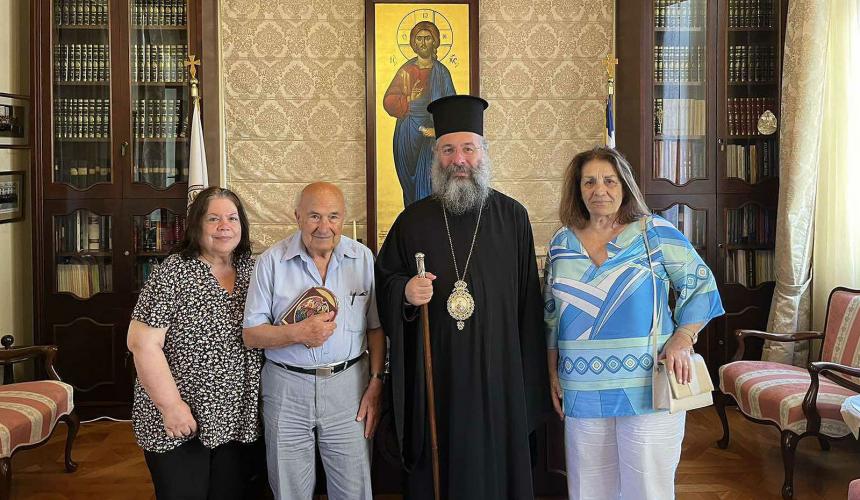 Το πρωί της Τετάρτης, 28ης Ιουνίου 2023, ο Σεβασμιώτατος Μητροπολίτης Ρεθύμνης και Αυλοποτάμου κ. Πρόδρομος είχε τη χαρά να υποδεχθεί στο γραφείο του τον έγκριτο συντοπίτη μας, μουσικοσυνθέτη κ. Μπάμπη Πραματευτάκη, συνοδευόμενο από τη σύζυγό του και από τη δημοσιογράφο κ. Εύα Λαδιά.