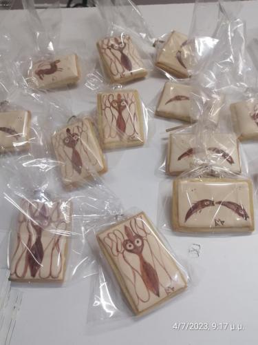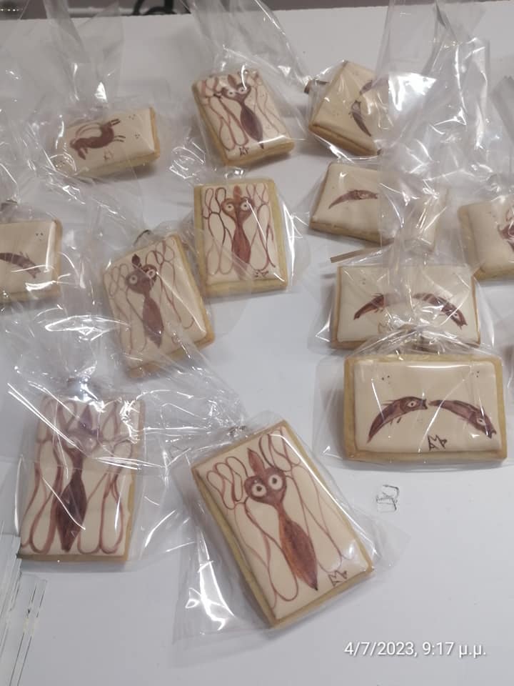Όπως είναι γνωστό η Εφορεία Αρχαιοτήτων Ρεθύμνου συμμετέχει στην φετινή γιορτή με δικό της περίπτερο, το οποίο προβάλει τα ευρήματα που σχετίζονται με την Μινωϊκή Διατροφή. Το κέρασμα τους για τους επισκέπτες της πρώτης βραδιάς ήταν σπιτικά μπισκότα που είχαν διακοσμηθεί με θέματα από τα εκθέματα του Μουσείου Ρεθύμνου!