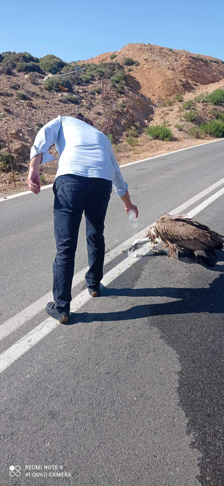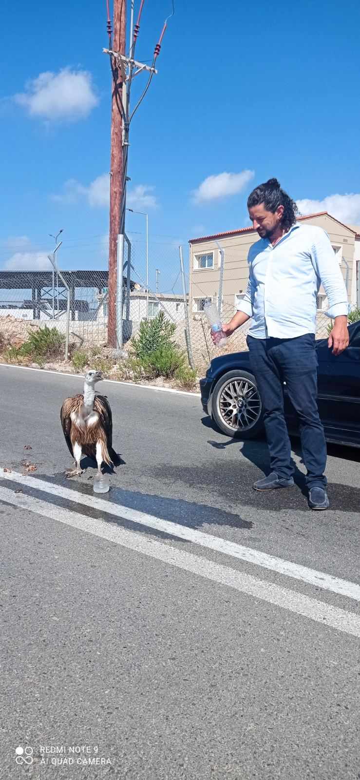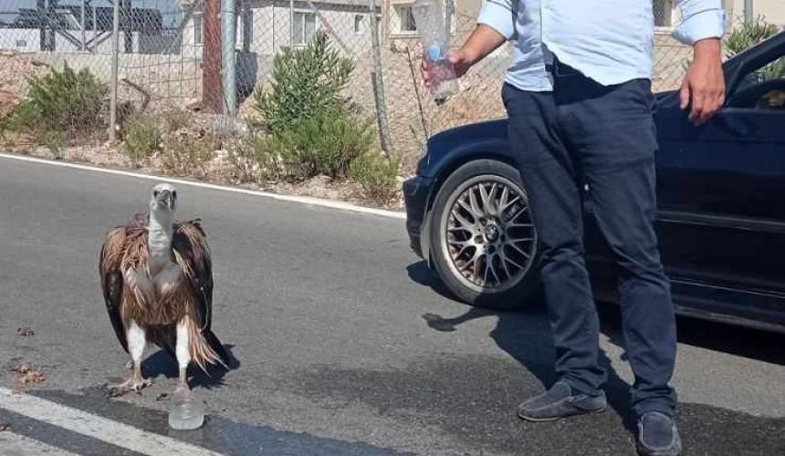 Ειδικότερα, ο αντιδήμαρχος καθημερινότητας του δήμου Αμαρίου κ. Βασίλης Κλάδος εντόπισε στις 16 Αυγούστου το μεσημέρι στην περιοχή του ΧΥΤΑ Αμαρίου ένα ακόμα ταλαιπωρημένο από τη δίψα γύπα που κατέβηκε στα χαμηλά για να βρει νερό. Ο κ. Κλάδος όπως φαίνεται και στο βίντεο, έδωσε νερό στο διψασμένο μεγαλόσωμο πτηνό ενώ στη συνέχεια φρόντισε να απομακρυνθεί από την άσφαλτο, μεταφέροντας το εντός του ΧΥΤΑ όπου υπάρχει καταλληλότερο σημείο για να πετάξει. Συγχρόνως, ειδοποίησε και το Δασαρχείο αναφέροντας το περιστατικό και το ακριβές σημείο που βρισκόταν ο γύπας.