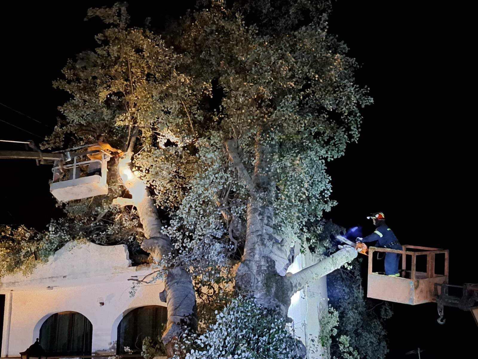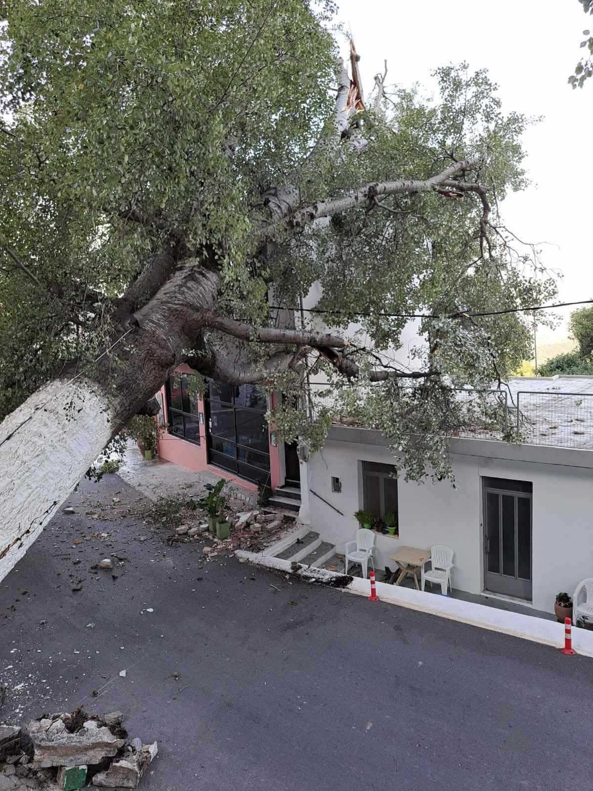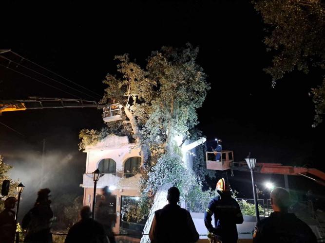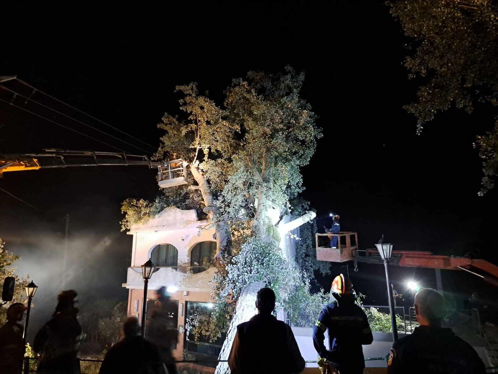 Στο σημείο επενέβησαν οι αρμόδιες υπηρεσίες για να κόψουν με προσοχή και να μαζέψουν τα ξύλα του δέντρου χωρίς περαιτέρω προβλήματα για τους κατοίκους ή τους επισκέπτες του οικισμού.