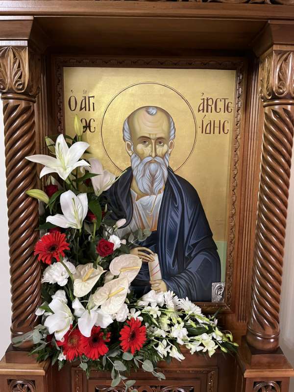 Ο Σεβασμιώτατος, προ της απολύσεως του Εσπερινού, ευχήθηκε τα δέοντα στον εορτάζοντα κτήτορα του Ιερού Ναού κ. Αριστείδη Λαδάκη, εξέφρασε τις ευχαριστίες του για την πολύτιμη βοήθειά του προς την Τοπική μας Εκκλησία και ευχήθηκε προς όλους το παράδειγμα, το σθένος και η ανδρεία του Αγίου Μάρτυρος και Φιλοσόφου Αριστείδου να αποτελούν πρότυπο ζωής και γνώμονα στις επιλογές και στις αποφάσεις μας, αναφερόμενος και στα τραγικά συμβάντα των τελευταίων ημερών στην Πατρίδα μας.