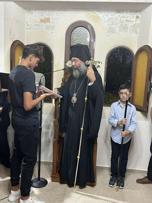 Το απόγευμα της Τρίτης, 12ης Σεπτεμβρίου 2023, ο Σεβασμιώτατος Μητροπολίτης Ρεθύμνης και Αυλοποτάμου κ. Πρόδρομος χοροστάτησε κατά τον Εόρτιο Εσπερινό στον πανηγυρίζοντα Ιδιωτικό Ιερό Ναό του Αγίου ενδόξου Μάρτυρος και Φιλοσόφου Αριστείδου, στον χώρο της «Φάρμας Λαδάκης» εντός των ορίων της Ενορίας Αλφάς.