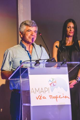 Προχωρώντας στη παρουσίαση των υποψηφίων που καταρτίζουν το ψηφοδέλτιο του, ο επικεφαλής του συνδυασμού «ΑΜΑΡΙ Νέα Πορεία», σημείωσε: «Η ομάδα που απαρτίζει τον συνδυασμό μας αποτελείται από δικούς σας ανθρώπους! Είναι Αμαριώτισσες και Αμαριώτες που επιζητούν τη συνεργασία και τη σύνθεση των απόψεων, για να πετύχουμε, όλοι μαζί, το καλύτερο δυνατό αποτέλεσμα για την περιοχή μας. Δημότες με ικανότητες, αξιοσύνη και πολιτικό ήθος. Δημότες με γνώσεις, που έχουν τη βούληση να προχωρήσουμε μπροστά, με ταχύτερο βηματισμό και να γίνουμε ακόμα πιο αποτελεσματικοί. Παραθέτουμε λοιπόν, στην κρίση σας, ένα πλήρες ψηφοδέλτιο, με 129 μέλη, με εκπροσώπους απ’ όλες τις Κοινότητες! Ένα ψηφοδέλτιο ισχυρό, με ισοβαρή εκπροσώπηση της τοπικής μας κοινωνίας. Ένα ψηφοδέλτιο κατά τα 2/3 ανανεωμένο, πολυσυλλεκτικό και ενωτικό, που δομήθηκε με μοναδικό κριτήριο τη διάθεση προσφοράς και την αγάπη μας για τον τόπο»