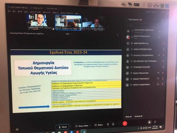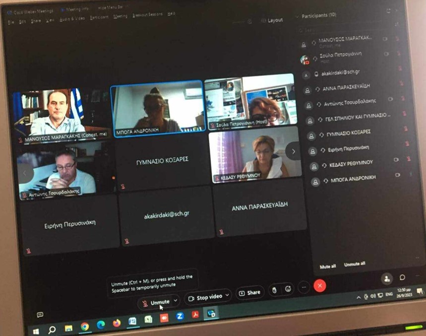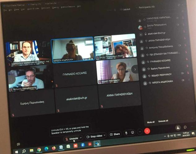 Την Τρίτη 26 Σεπτεμβρίου 2023, πραγματοποιήθηκε μετά από Πρόσκληση της Διεύθυνσης Δευτεροβάθμιας Εκπαίδευσης Ρεθύμνου Διαδικτυακή Συνάντηση Συνεργασίας για θέματα που αφορούν στην ομαλή λειτουργία των Σχολικών Μονάδων, τη συνεργασία με ειδικούς Επιστήμονες και την υποστήριξή τους.