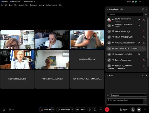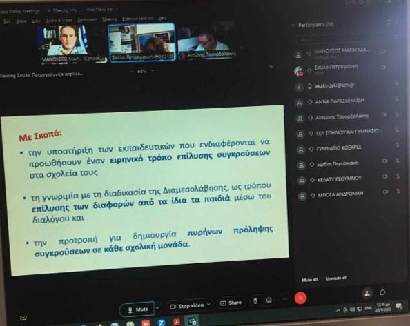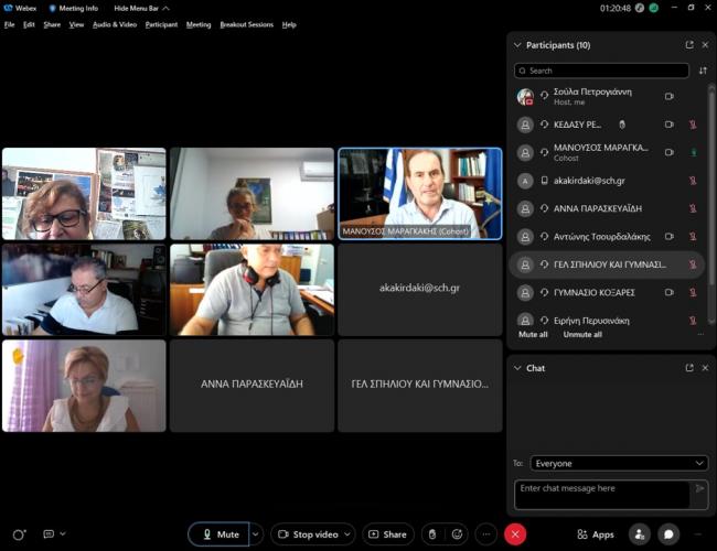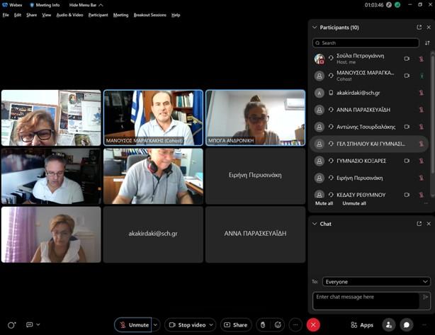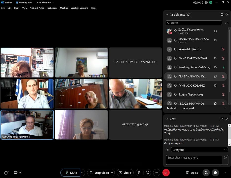 Διαδικτυακή Συνάντηση Συνεργασίας για θέματα που αφορούν στην ομαλή λειτουργία των Σχολικών Μονάδων, τη συνεργασία με ειδικούς Επιστήμονες και την υποστήριξή τους.