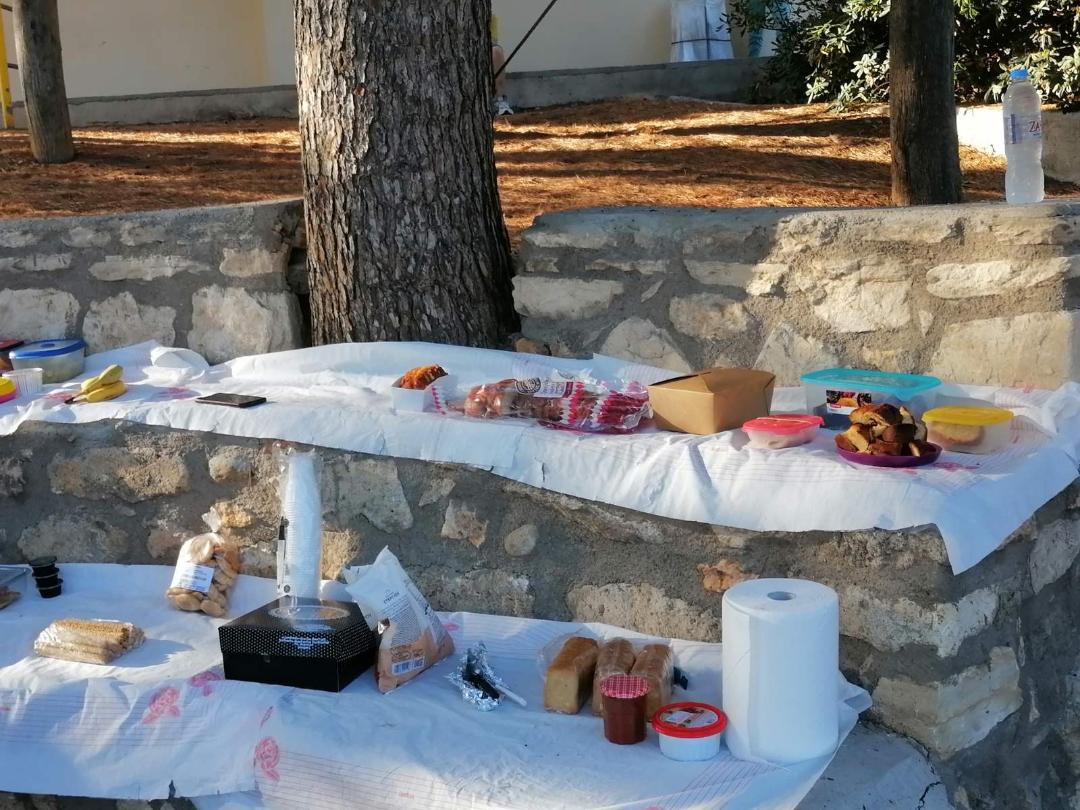 Οδήγησαν τα πρωτάκια , συνοδεία δασκάλων, στο παρακείμενο του σχολείου ‘αμφιθεατρικό παρκάκι’ και αφού καθάρισαν και προετοίμασαν τον χώρο , τους προσέφεραν φυσικούς χυμούς και διάφορες νοστιμιές που είχαν προετοιμάσει για την περίσταση.