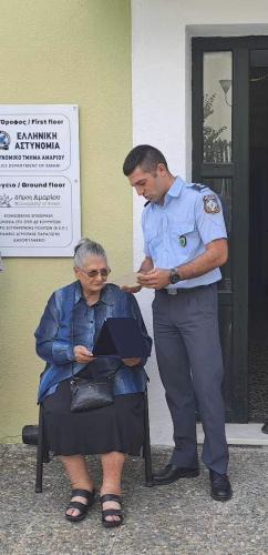 Ο κ. Περάκης αφού ανέφερε τα καλύτερα για την οικογένεια, ευχαρίστησε την κ. Κασιμάτη για την πολυετή φιλοξενία της και της παρέδωσε το κλειδί του πρώην ΑΤ Αμαρίου, ενώ της έδωσε εκ μέρους του Ταξιάρχου κ. Εμμανουήλ Παπαδάκη μια τιμητική πλακέτα και ένα κάδρο με ευχαριστήριο επιστολή.