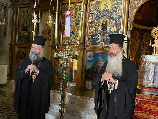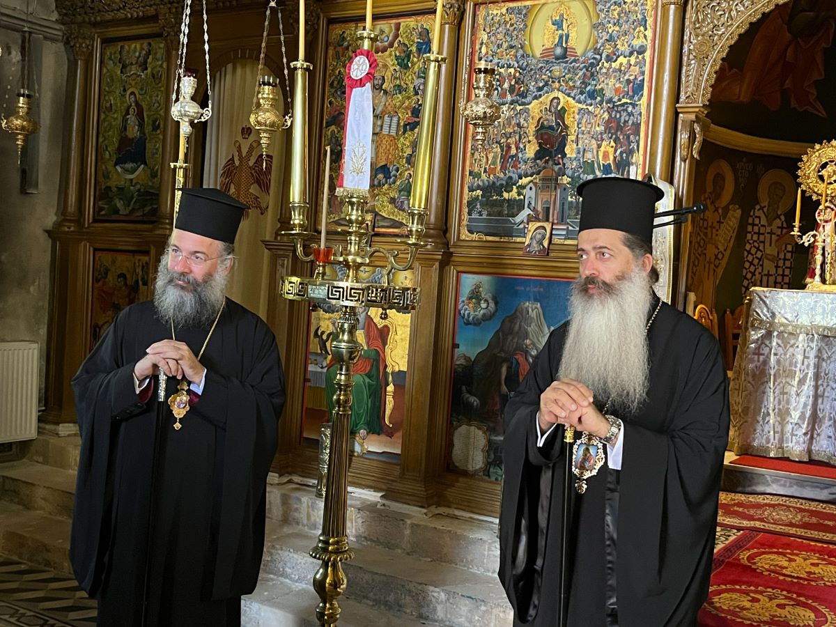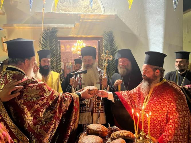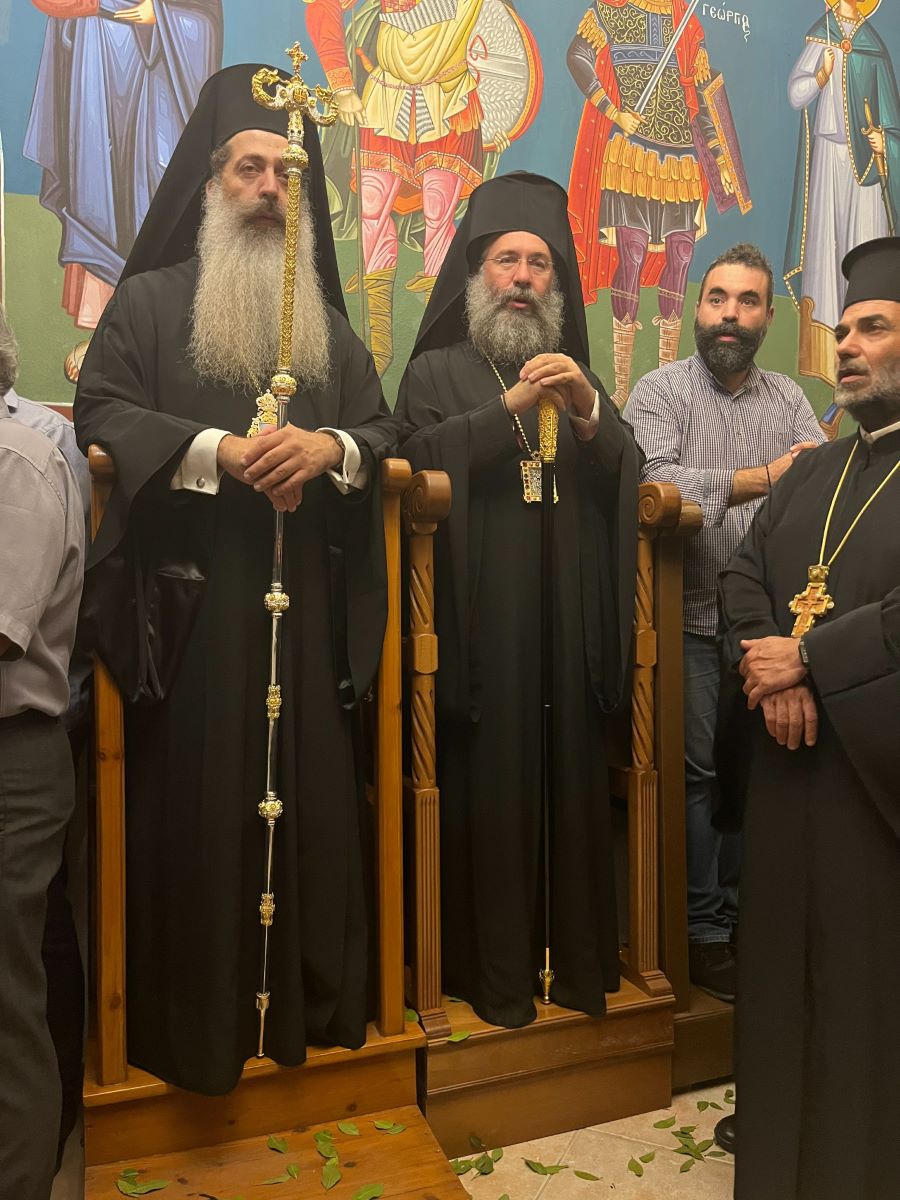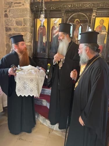 Την Τρίτη, 7η Νοεμβρίου 2023, ο Σεβασμιώτατος κ. Συμεών και η συνοδεία του, συνοδευόμενοι από τον Σεβασμιώτατο Ποιμενάρχη μας κ. Πρόδρομο, επισκέφθηκαν προσκυνηματικά το περίπυστο Θεομητορικό Προσκύνημα της Παναγίας των Μυριοκεφάλων, όπου έγιναν δεκτοί από τον Εφημέριο, Αιδεσιμολ. Πρωτοπρεσβύτερο Θεόδωρο Σηφάκη, και ακολούθως την Ιερά Πατριαρχική και Σταυροπηγιακή Μονή Προφήτου Ηλιού Ρουστίκων, όπου τους υποδέχθηκε ο Ηγούμενος, Πανοσιολ. Αρχιμανδρίτης Ιωάννης Κουφουδάκης.