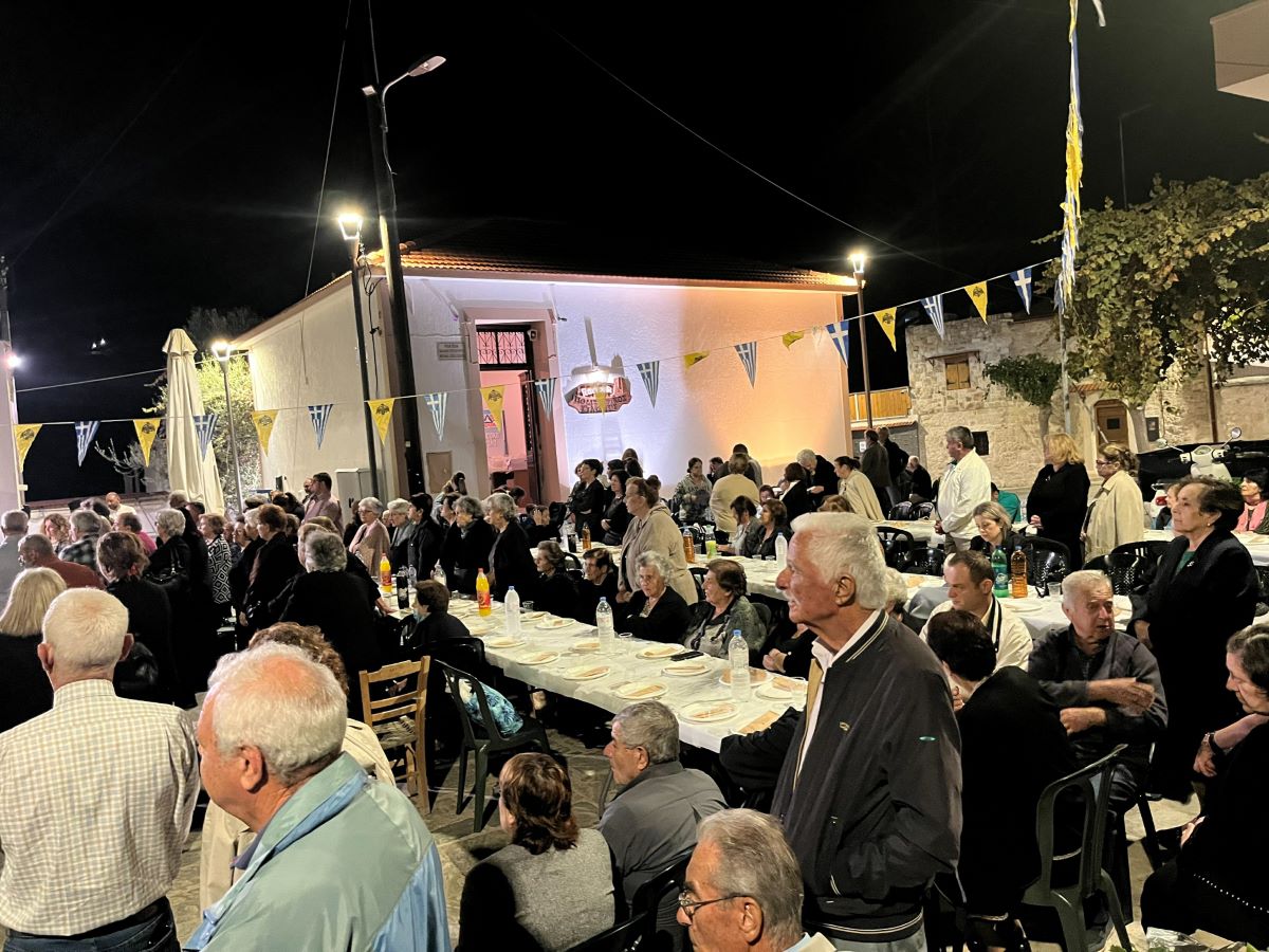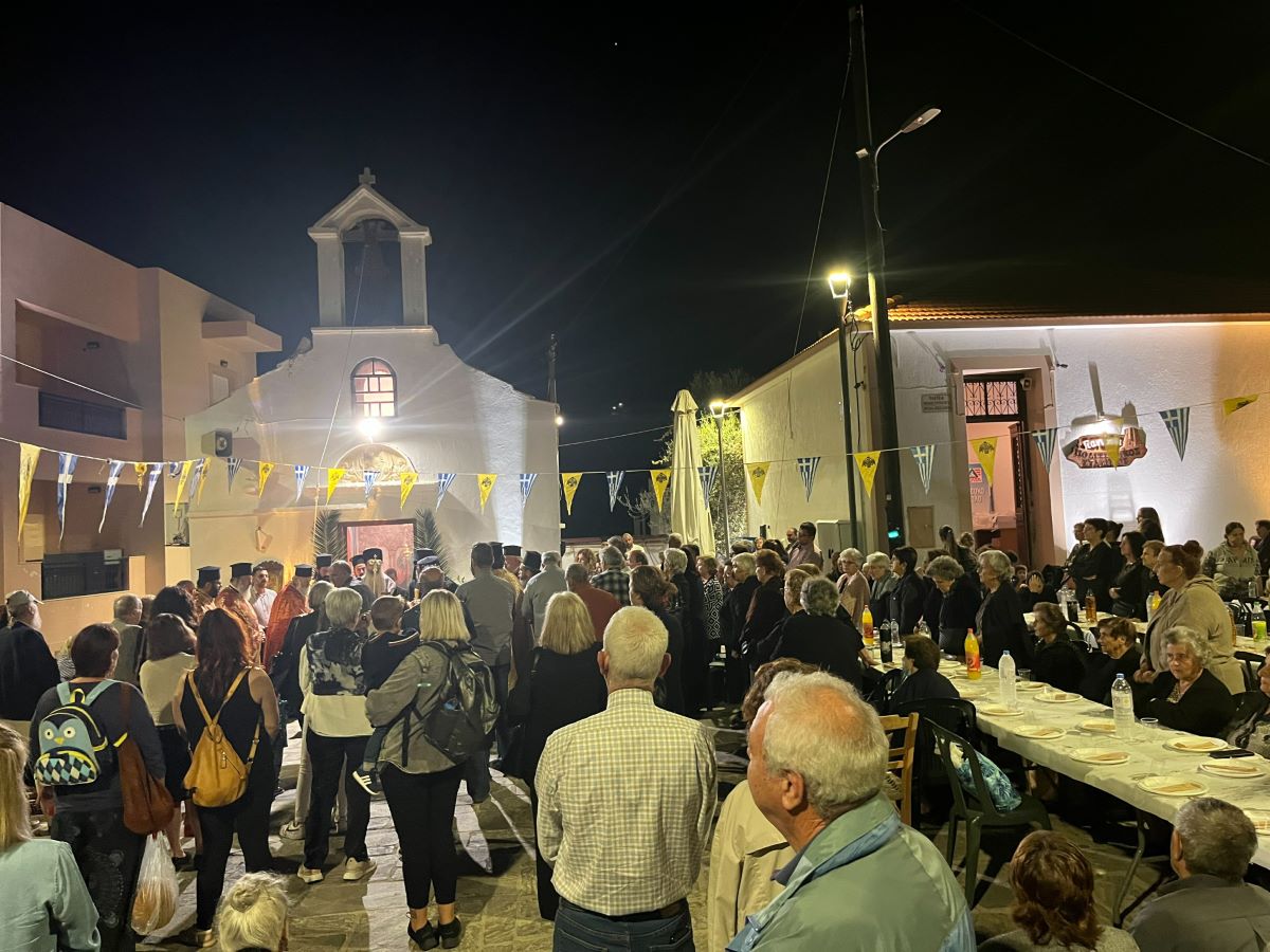 Μετά το πέρας της Ακολουθίας του Εσπερινού, στην οποία παρέστη, μεταξύ άλλων, η Αντιπεριφερειάρχης Ρεθύμνης κ. Μαίρη Λιονή, προσφέρθηκε πλούσια πανηγυρική τράπεζα προς όλους τους πολυπληθείς προσκυνητές, οι οποίοι προσήλθαν ακόμη και από το Ηράκλειο για το συνεορτασμό της μεγάλης Εορτής της Συνάξεως των Αρχιστρατήγων Μιχαήλ και Γαβριήλ και των λοιπών Ασωμάτων Δυνάμεων.