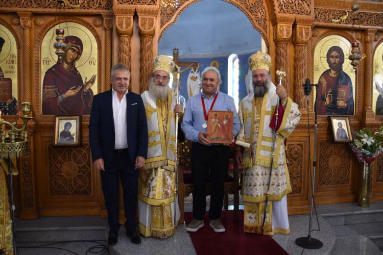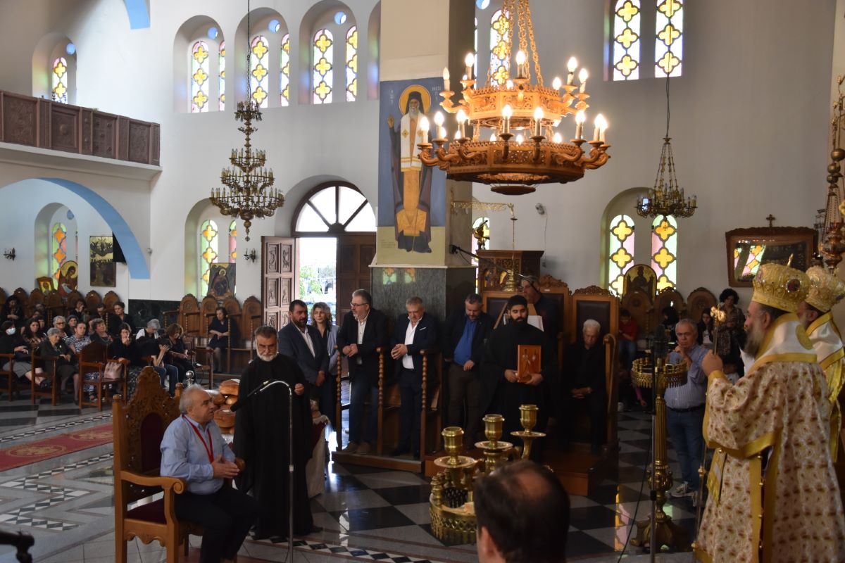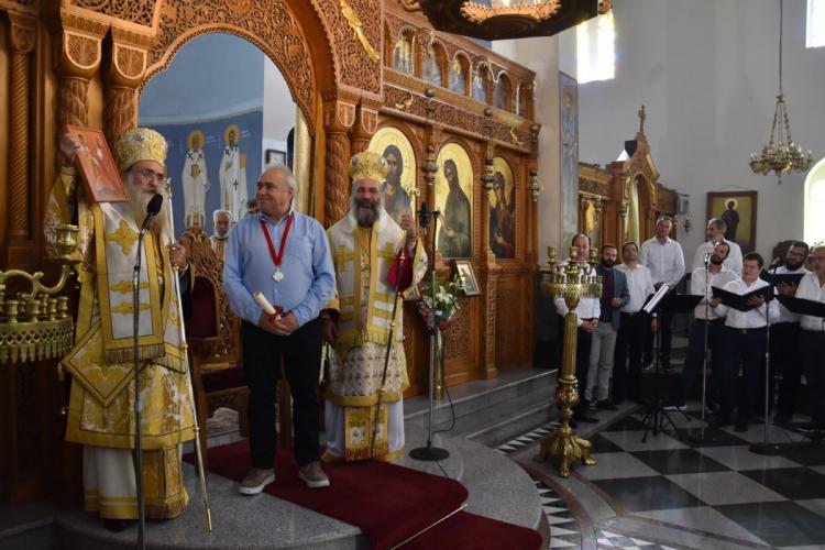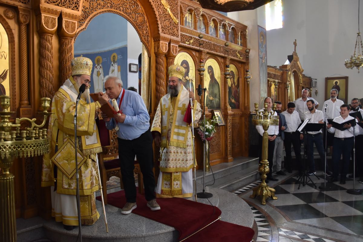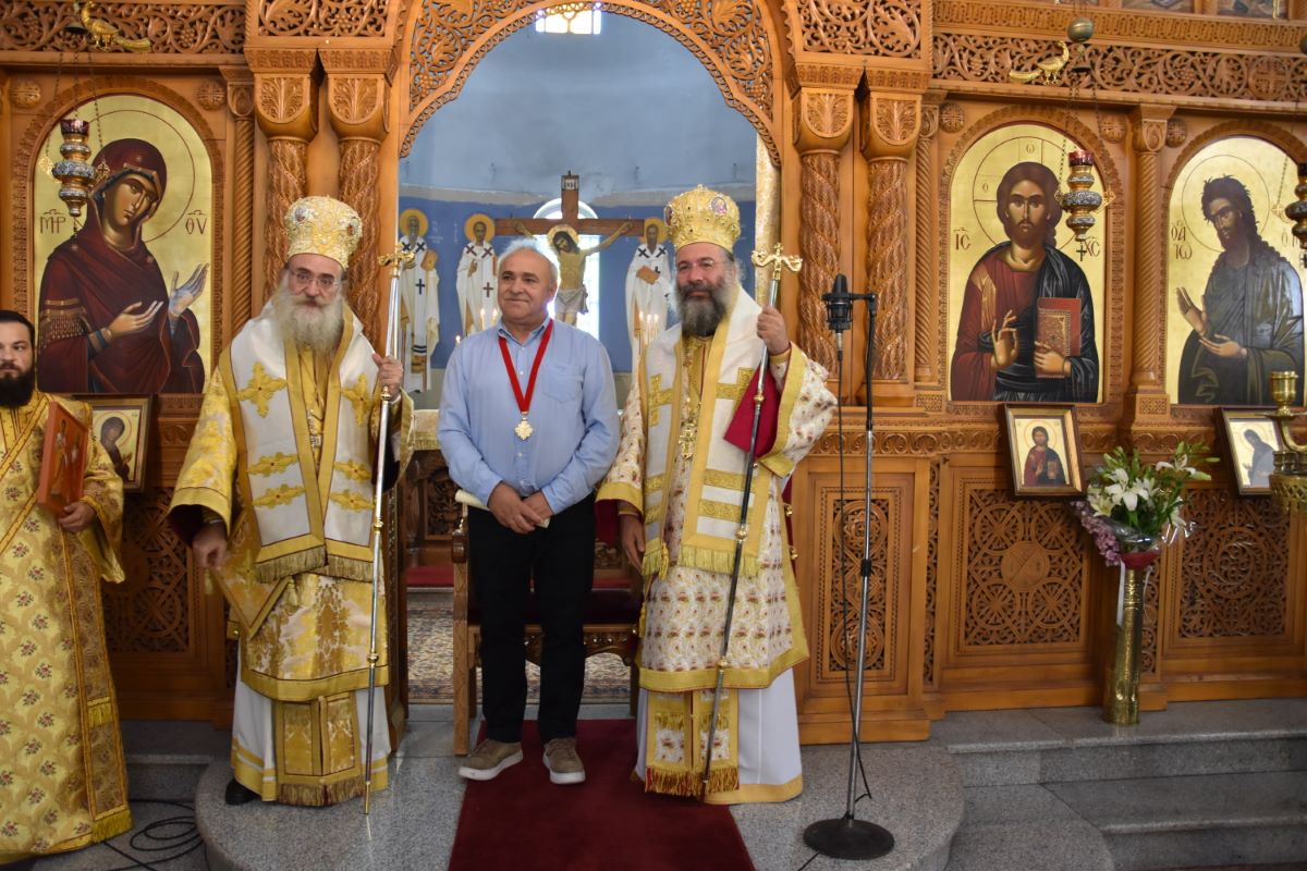 Προ της απολύσεως της Θείας Λειτουργίας, ο Σεβασμιώτατος Μητροπολίτης Γορτύνης και Αρκαδίας κ. Μακάριος επέδωσε στον εντιμότατο κ. Γεώργιο Μαυρογιάννη, Γενικό Διευθυντή της Αναπτυξιακής Ηρακλείου, την Ανωτάτη Τιμητική Διάκριση της Εκκλησίας Κρήτης, τον Σταυρό των Αγίων Αποστόλων Παύλου και Τίτου μετά σχετικού Παπύρου, επαινώντας και αναγνωρίζοντας την πολύτιμη προσφορά του στην Εκκλησία των Γορτυνίων.