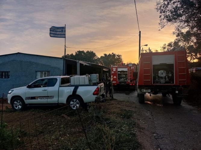 Επί τόπου έσπευσε μεγάλη δύναμη της πυροσβεστικής με 35 άτομά και 12 υδροφόρα οχήματα καθώς και εθελοντικές ομάδες.
