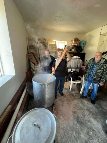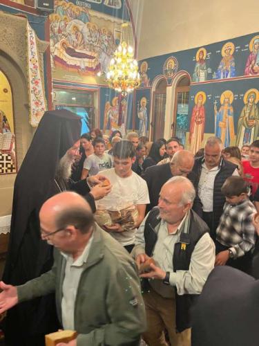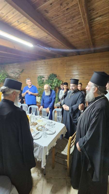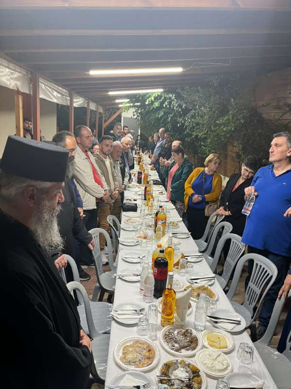 Μετά το πέρας του Εσπερινού, προσφέρθηκε εόρτια τράπεζα προς το πολυπληθές εκκλησίασμα, στον αύλειο χώρο του Ιερού Ναού.