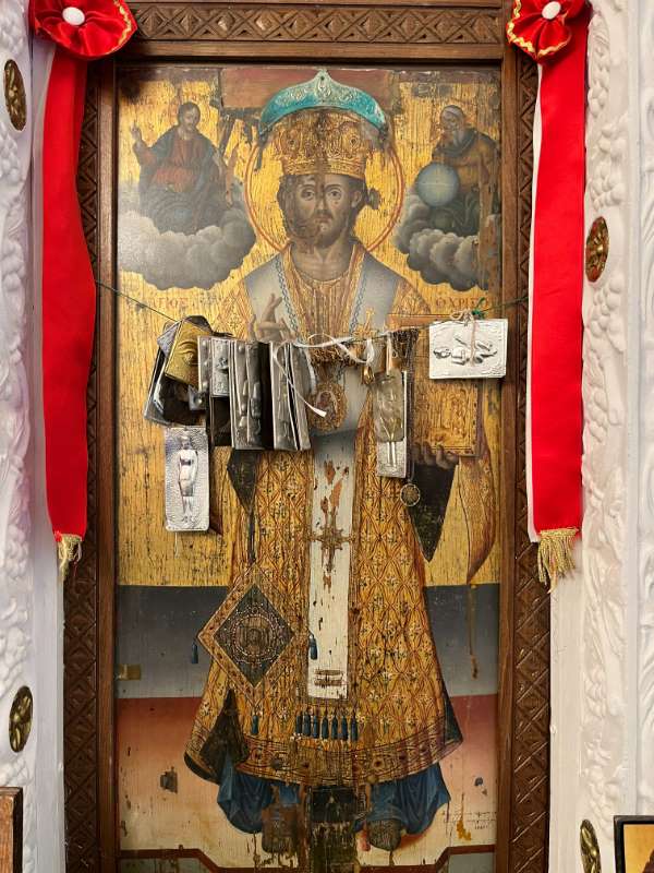 Ακολούθησε στον προαύλειο χώρο του Ναού, παρά την καταρρακτώδη βροχή, πλούσια πανηγυρική τράπεζα προς όλους τους πολυπληθείς προσκυνητές που συνέτρεξαν στην Εορτή του Αγίου.