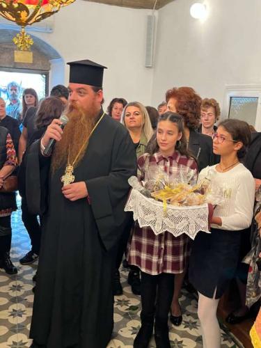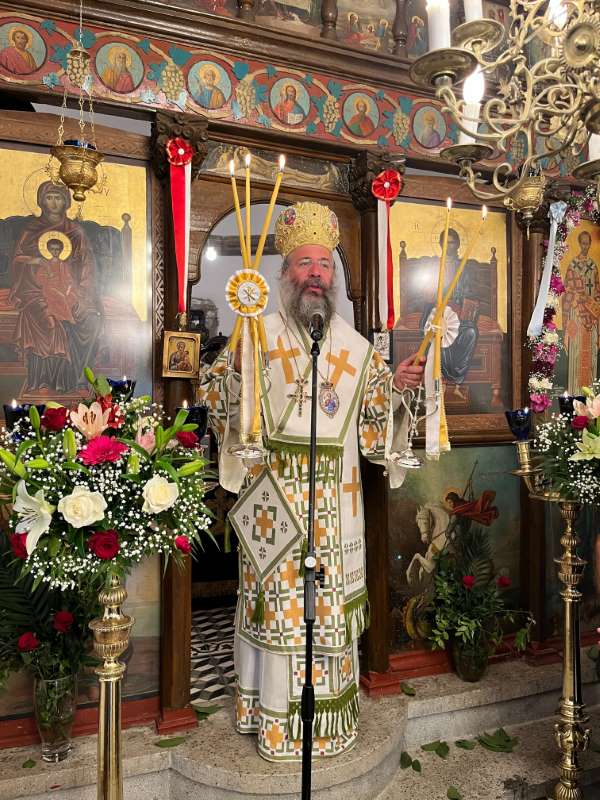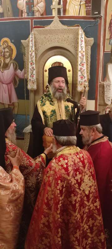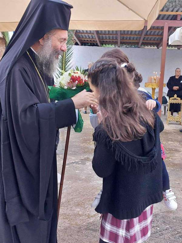 Προ της απολύσεως της Θείας Λειτουργίας, τον Σεβασμιώτατο προσφώνησε με θερμούς λόγους ο Εφημέριος, Αιδεσιμολ. Πρωτοπρεσβύτερος Θεόδωρος Σηφάκης, ο οποίος εξέφρασε τη χαρά του για την ανταπόκριση των ανθρώπων πάντοτε στην πρόσκληση της Εκκλησίας, επαινώντας τους ενορίτες για τον τρόπο με τον οποίο αγκαλιάζουν και αγαπούν τη λατρευτική ζωή της Εκκλησίας μας.