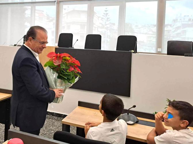 Ο διάλογος εξελίχθηκε με τόση ευπρέπεια, σεβασμό και ευγένεια εκ μέρους των παιδιών που ο Δήμαρχος κατέθεσε τα θερμά του συγχαρητήρια στους γονείς κι εκπαιδευτικούς τους για την ποιότητα της ανατροφής και της παιδείας που τους προσφέρουν. Δέχθηκε με χαρά τη γλάστρα με το γιορτινό φυτό που τους πρόσφεραν οι μικροί επισκέπτες του και τους διαβεβαίωσε ότι θα παραστεί στη Χριστουγεννιάτικη γιορτή τους, όπως άλλωστε πράττει κάθε χρόνο, για να μοιραστεί μαζί τους ευχές και την ικανοποίηση της συνάντησης με τη σχολική τους κοινότητα.