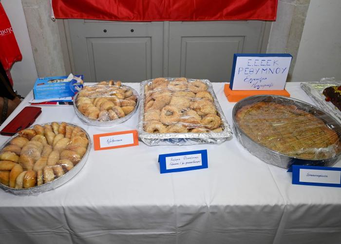 Την εκδήλωση υποστήριξαν οι καθηγητές με τους μαθητές του εργαστηρίου μαγειρικής - ζαχαροπλαστικής του σχολείου δευτεροβάθμιας ειδικής αγωγής ΕΕΕΕΚ Ρεθύμνου. Με τα γλυκά και αλμυρά τους εδέσματα και τους μαθητές σερβιτόρους επί ποδός, εντυπωσίασαν το κοινό.