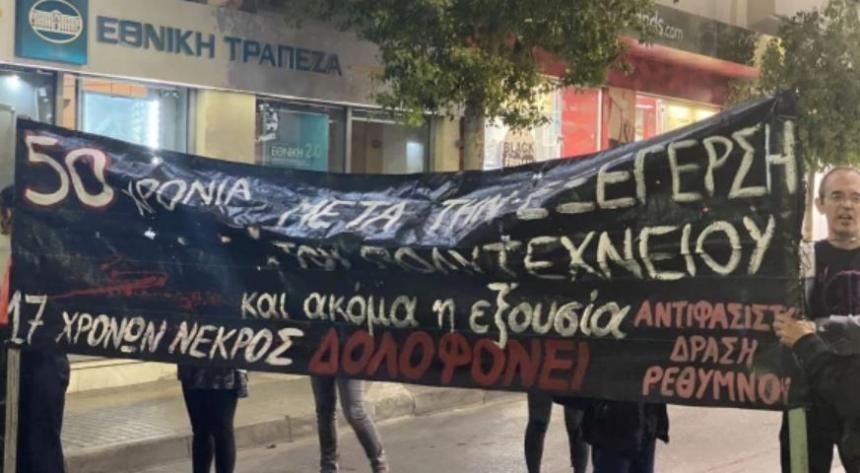 Πενήντα χρόνια πέρασαν από την εξέγερση των φοιτητών στο Πολυτεχνείο ενάντια στη χούντα των συνταγματαρχών και δεκάδες κόσμου σήμερα, ανήμερα της επετείου, βγήκαν στους δρόμους και στο Ρέθυμνο για να τιμήσουν την ημέρα αυτή και τους νεκρούς φοιτητές.