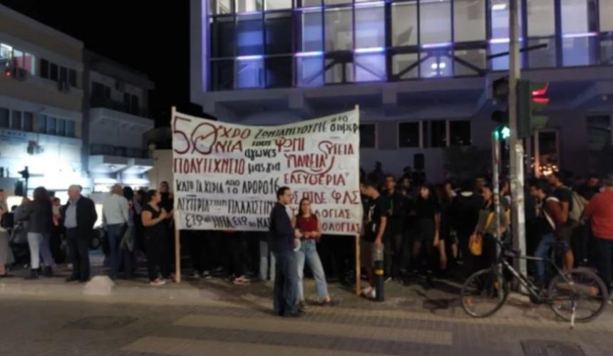 Δεκάδες πολίτες βγήκαν στους δρόμους του Ρεθύμνου για να τιμήσουν τους νεκρούς φοιτητές που αναμετρήθηκαν με τη χούντα