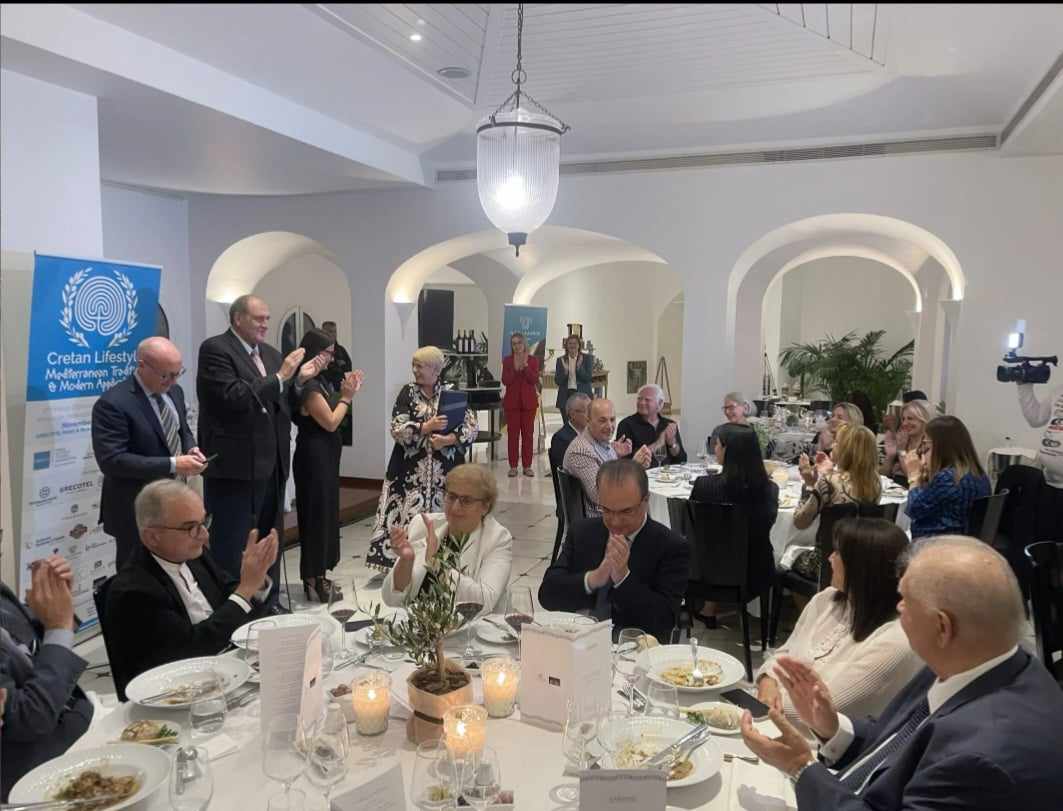 Το επίσημο δείπνο ολοκληρώθηκε με 3 βραβεύσεις: Το βραβείο Life Time Achivement παρέλαβε ο Καθηγητής Χρήστος Λιονής , διακεκριμένος και πολυβραβευμένος για το έργο του , Καθηγητής Δημόσιας Υγείας και Προληπτικής Ιατρικής , της Ιατρικής Σχολής του Πανεπιστήμιου Κρήτης . Το βραβείο Courage & Resiliance παρέλαβε η Δημοσιογράφος Αντιγόνη Ανδρεδάκη σαν εξαιρετικό " Παράδειγμα Κουράγιου και Στάση Ζωής" που έχει επιδείξει , στο προσωπικό πρόβλημα υγείας της. Το βραβείο Αncel Keys παρέλαβε η Ιταλίδα Μaria La Gloria , ιδρύτρια του μουσείου Ancel Keys στην Ιταλία και επί δεκαετίες προσωπική βοηθός του Καθηγητή που έκανε την μελέτη των 7 χωρών και επιστημονικά ανέδειξε τον κρητικό τρόπο ζωής των παππούδων μας , ως τον πιο υγιεινό τρόπο ζωής για μακροζωία και λιγότερα προβλήματα καρδιοπάθειας. Πριν το επίσημο δείπνο, οι Υπουργοί, ο περιφερειάρχης μαζί με τους περιφερειακούς θεματικούς και τοπικούς άρχοντες, επισκέφτηκαν την έκθεση με τα Κρητικά - Ελληνικά Υπερτρόφιμα ( Super Foods) που εντυπωσίασε.