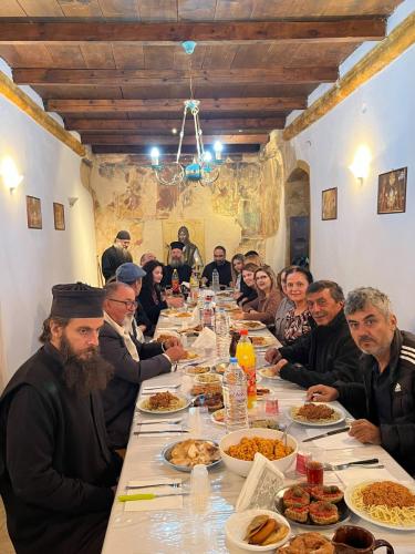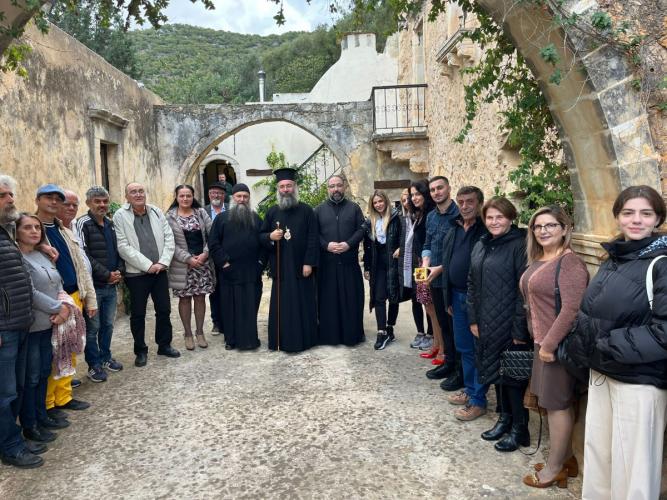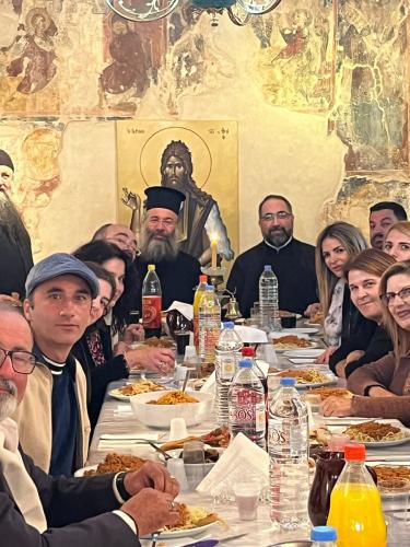 Ακολούθως, στην Ιερά Μονή Τιμίου Προδρόμου Ατάλης-Μπαλή, ο Σεβασμιώτατος παρακάθισε σε γεύμα παρατιθέμενο προς την Θεατρική Ομάδα της Συνάξεως Νέων της Ιεράς Μητροπόλεως Ρεθύμνης και Αυλοποτάμου, όπου είχε τη χαρά της αναστροφής με όλα τα εκλεκτά μέλη της Ομάδας και τον υπεύθυνό της, κ. Γεώργιο Καλογεράκη, και να συνομιλήσει μαζί τους σχετικά με την προετοιμασία της θεατρικής παράστασης που θα είναι αφιερωμένη στη ζωή και το μαρτύριο των Αγίων Τεσσάρων Νεομαρτύρων της πόλεώς μας.
