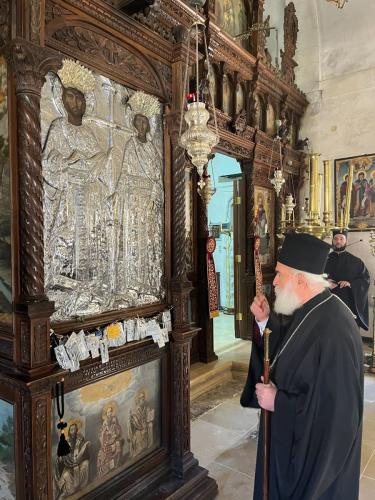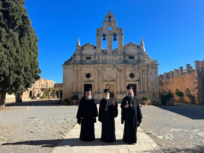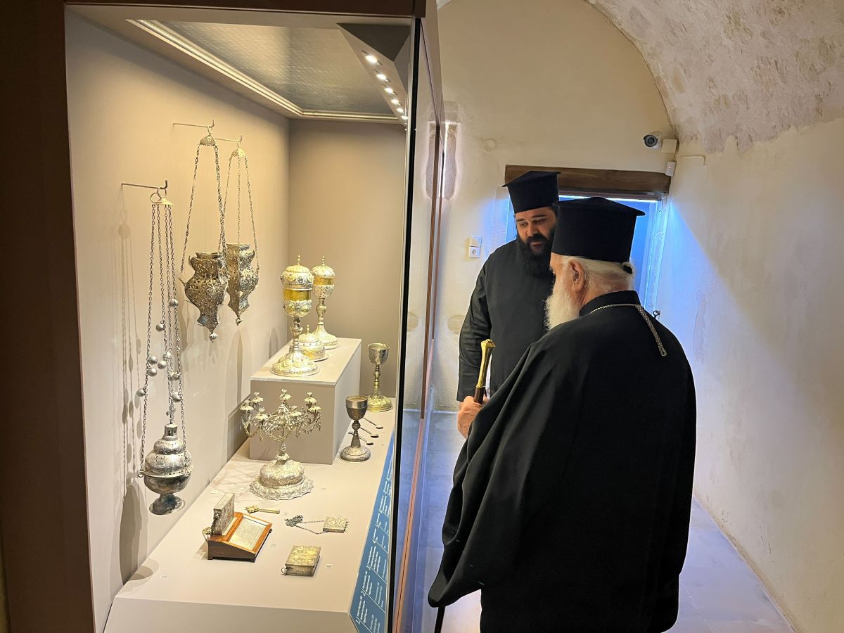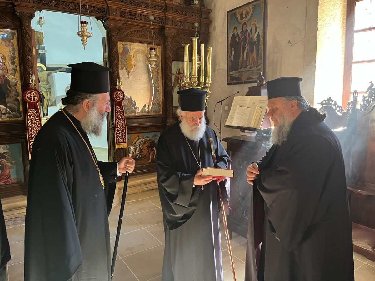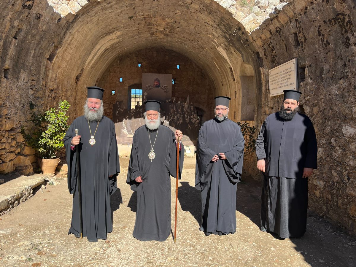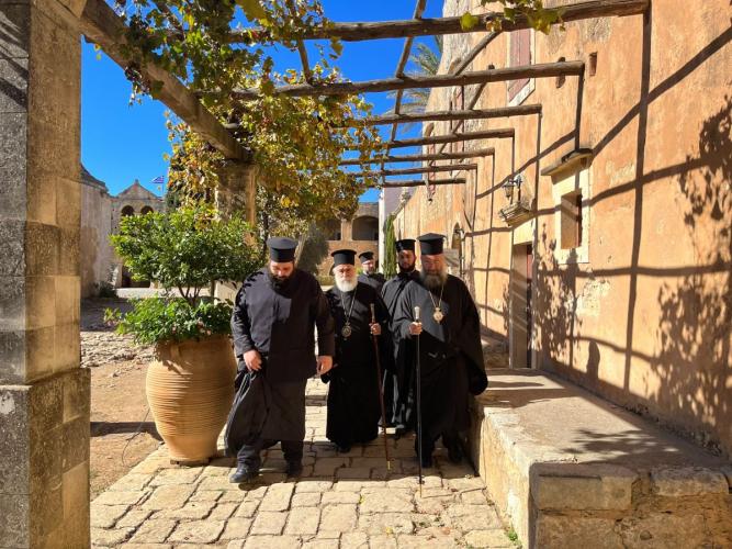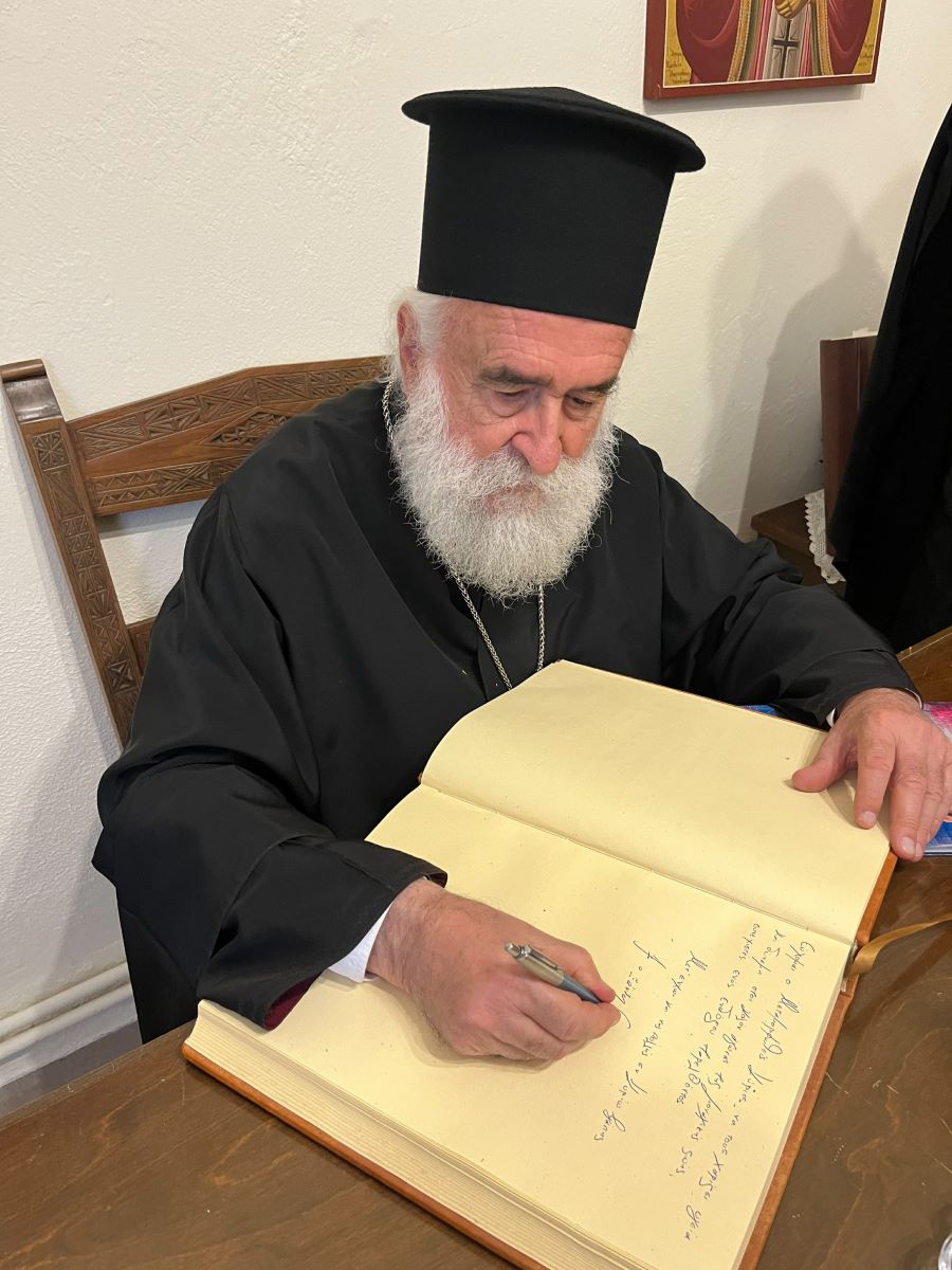 Ο Σεβασμιώτατος κ. Παντελεήμων ξεναγήθηκε από τον Πανοσιολογιώτατο Αρχιμανδρίτη Θεολόγο Παπαλεβυζάκη, Ηγουμενοσύμβουλο, στα Μουσεία και στον ιερό χώρο της Πυριτιδαποθήκης της Ιεράς Μονής Αρκαδίου, και έλαβε με συγκίνηση από τα χέρια του Καθηγουμένου, Πανοσιολογιωτάτου Αρχιμανδρίτου Τίτου Βαμβακά, το μνημειώδες έργο του αοιδίμου, από Επισκόπου Ρεθύμνης και Αυλοποτάμου, Μητροπολίτου Κρήτης Τιμοθέου Βενέρη με τον τίτλο: «ΤΟ ΑΡΚΑΔΙ ΔΙΑ ΤΩΝ ΑΙΩΝΩΝ».